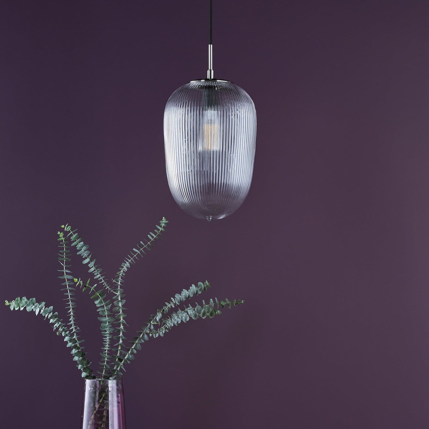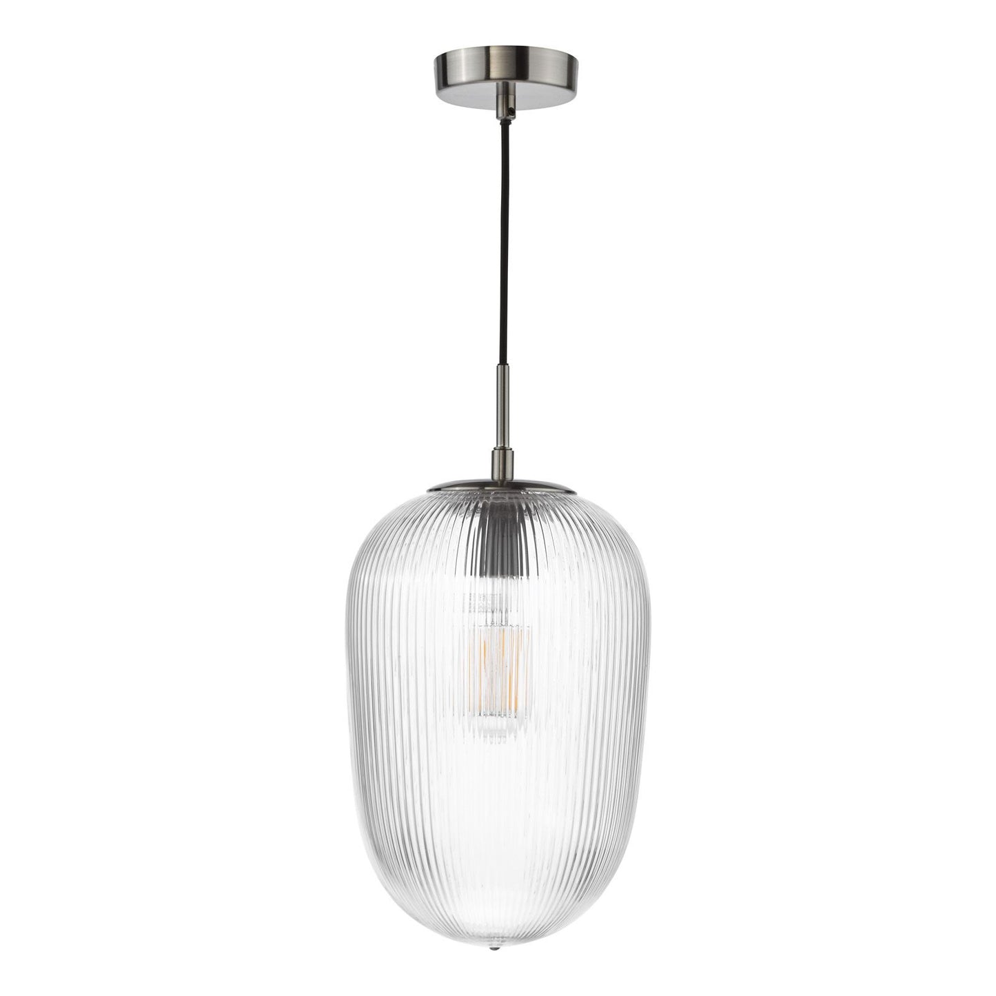 Illuminate your space with a touch of contemporary elegance using the Abrielle Single Pendant. This sleek pendant light fixture features a polished nickel finish and a clear ribbed glass shade, forming an eye-catching acorn shape that's sure to turn heads. Perfect for modern interiors, this versatile lighting solution has an adjustable hanging length, allowing you to customize its placement to suit your space. Whether suspended over a dining table, kitchen island, or in a cozy reading nook, the Abrielle pendant adds a dash of sophistication to any room.