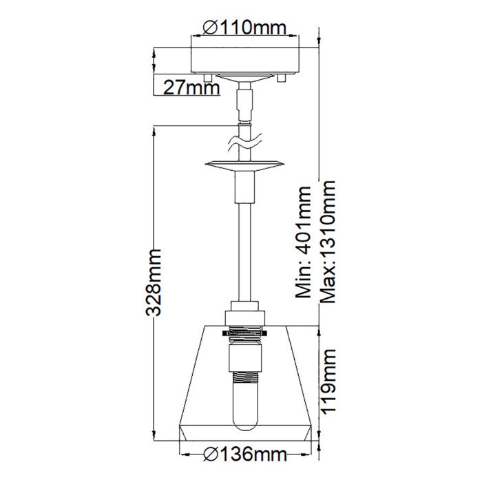 - Product Dimensions: H: 328mm D: 136mm Min/Max Drop: 401mm - 1310mm