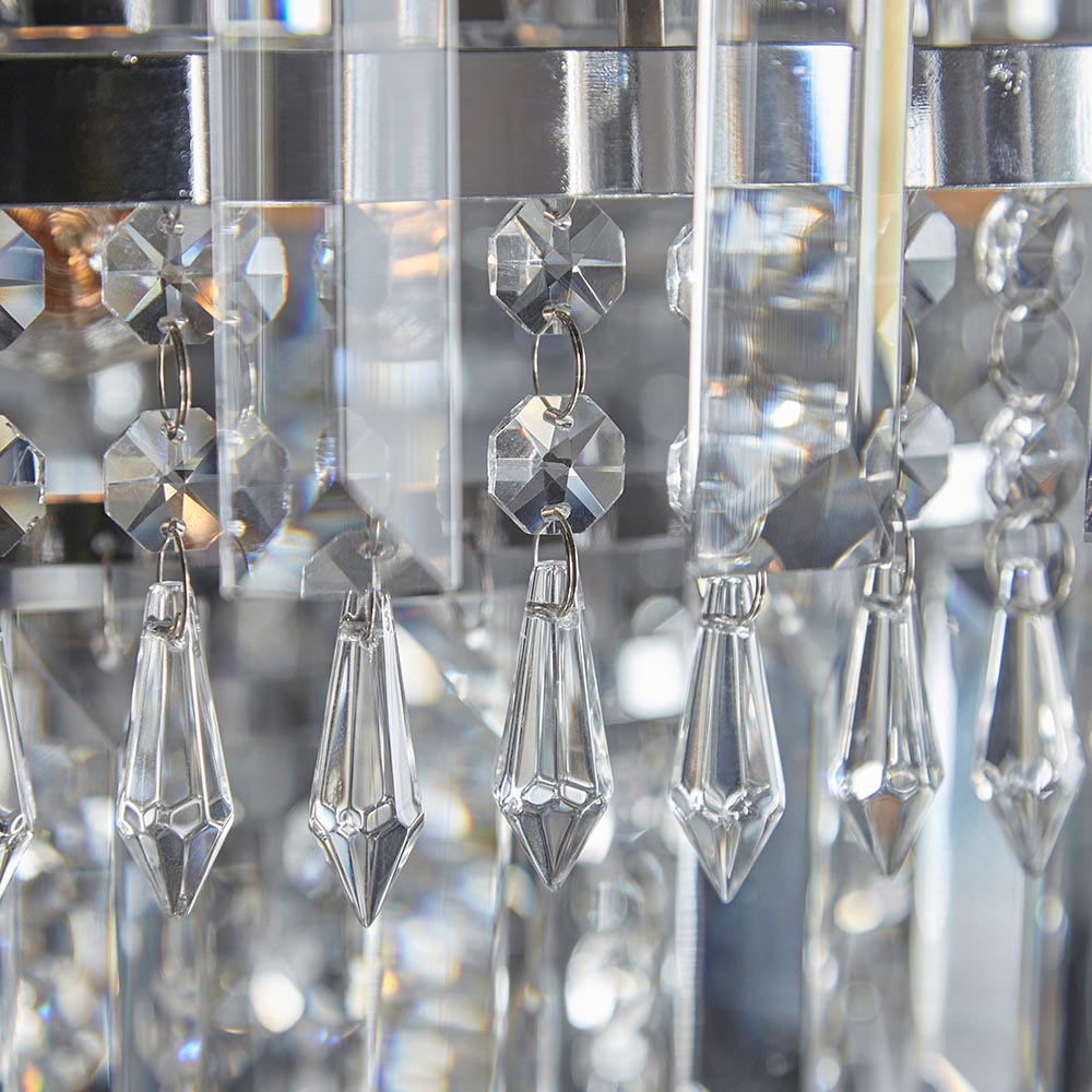 A luxuriant mix of faceted clear glass and polished chrome creates a stunning centre piece to complement any room.