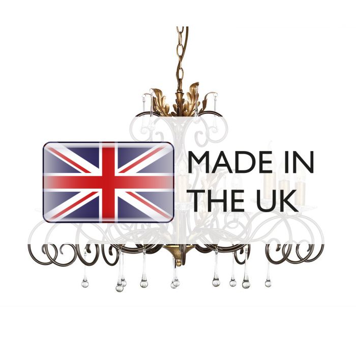 Designed and manufactured exclusively by Elstead, this handmade range features traditionally forged scrolls and antiqued oak leaves. Fittings are dressed in clear glass drops and cut glass sconces. Made in England.