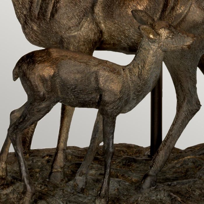 This portable table lamp has a Stag and Fawn statuette in Bronze Patina finish and is completed with a Laminated Oval Natural Hessian shade. LSUK071