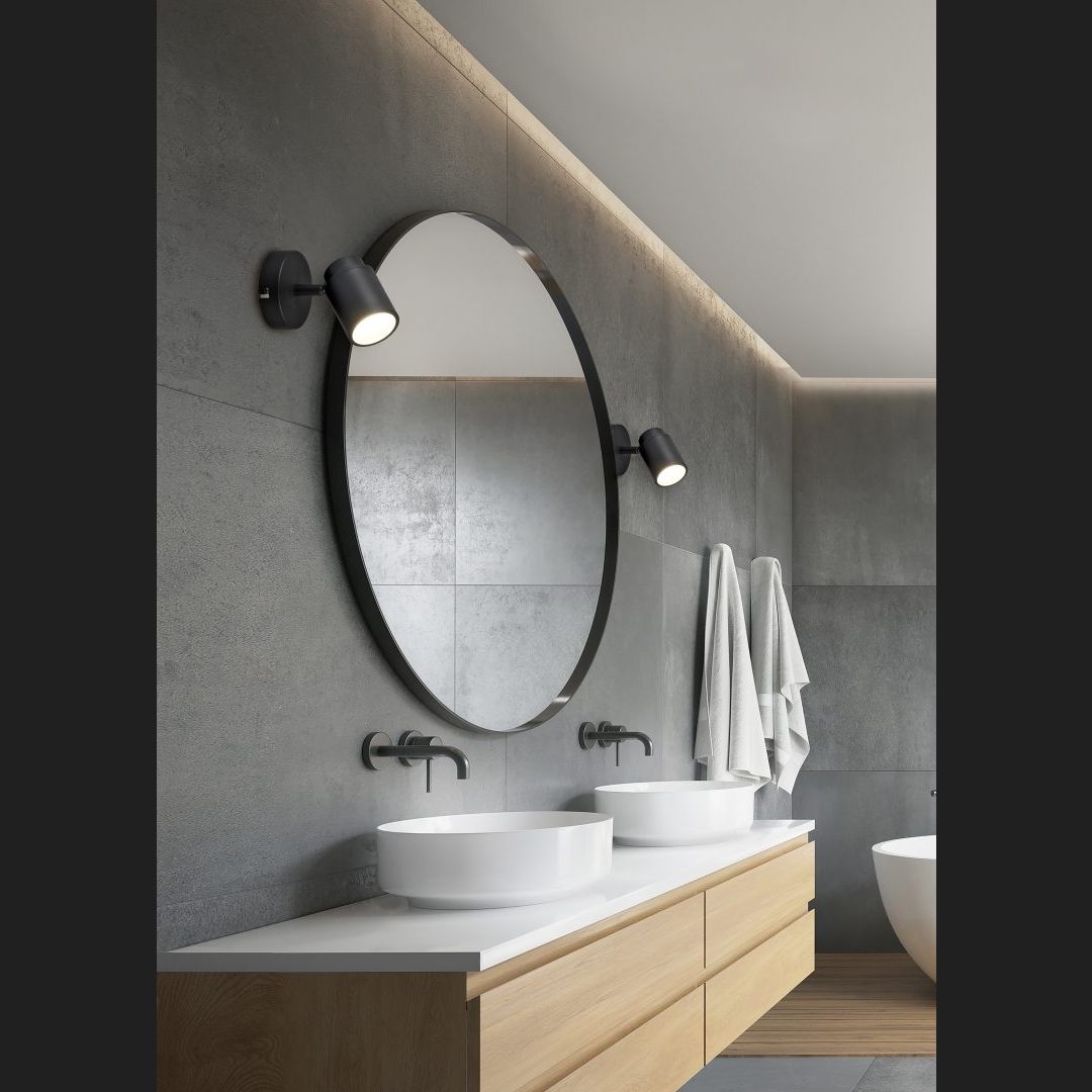 Spot it! The classic spotlights in the ANGELO series can be used to skilfully set the scene in living spaces and provide targeted lighting. Thanks to the variably adjustable shades and IP44 splash protection, the wall light is extremely versatile. Whether in the laundry room with a spotlight on the washing machine or in the bathroom with the focus on the mirror - the spotlights in the ANGELO range provide ideal illumination for your living area everywhere. Thanks to the modern design in matt black, the luminaire can be perfectly integrated into many concepts. For energy-saving lighting, it is recommended to use an LED illuminant. These are an optimal alternative to conventional halogen lamps and stand for a high quality of light and energy savings of up to 80%. In addition, LED lamps help you benefit from a long service life, low heat generation and at the same time protect the environment.