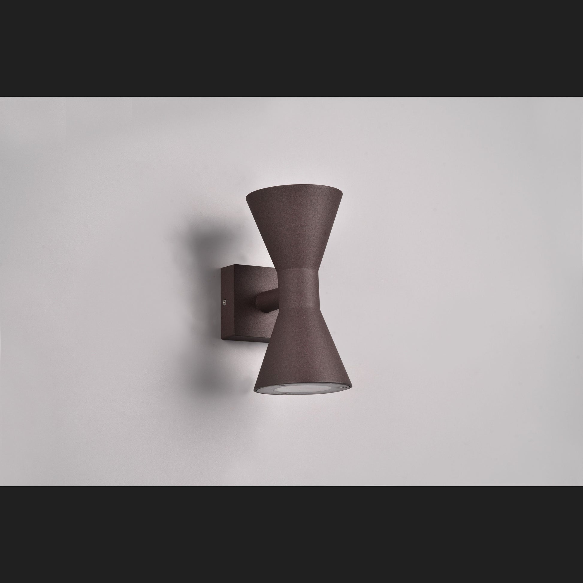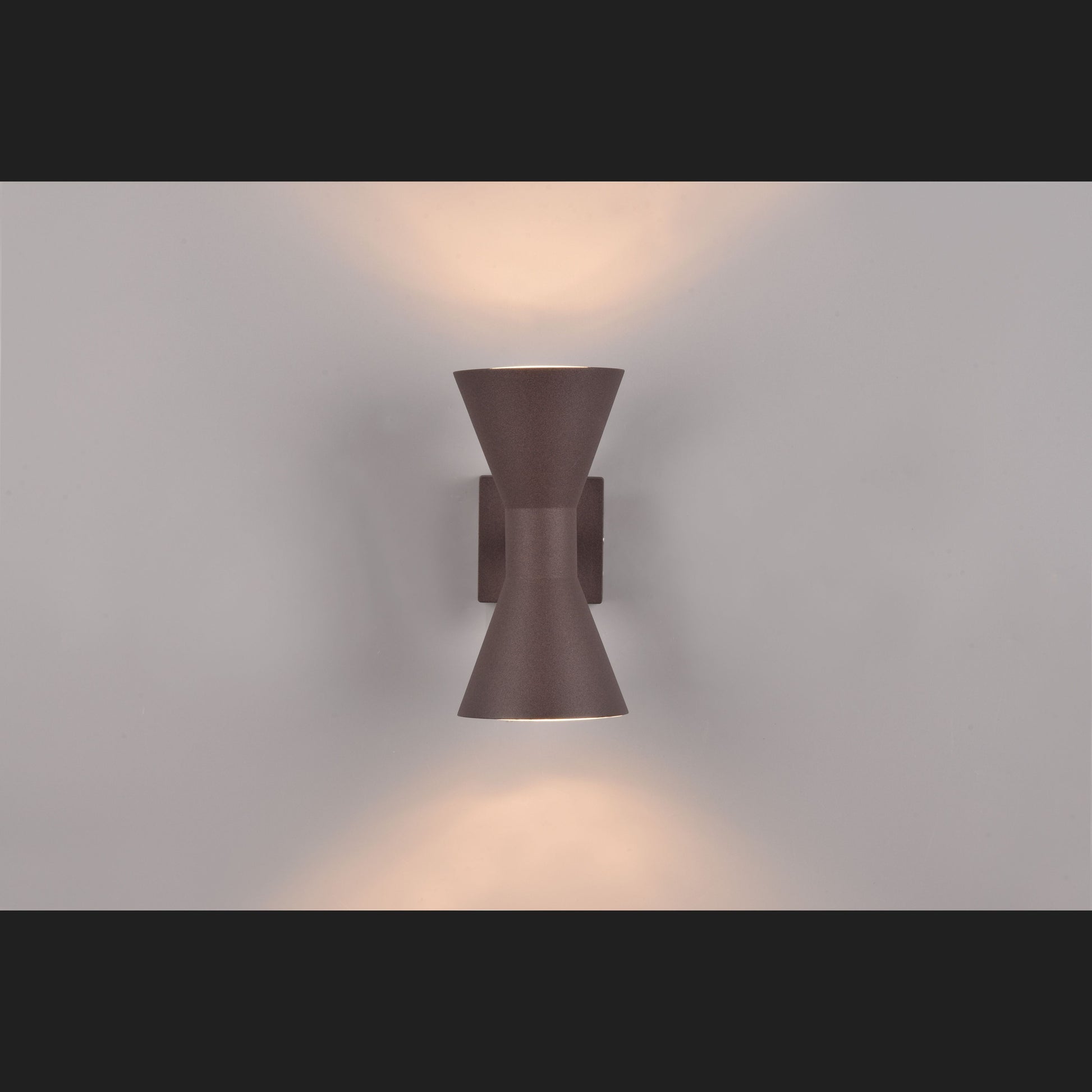 The up and down lighting of the ARDAS wall luminaire sets targeted decorative accents on your house façade and bathes your garden, terrace or entrance area in a harmonious ambience. The light source not only provides atmospheric light diffusion, but also safety as darkness begins to fall around your house. Thanks to the IP44 protection rating and the robust body made of die-cast aluminium, the outdoor luminaire defies all weather conditions. The hourglass design and stylish rust colour scheme will enhance your outdoor area with contemporary style. For energy-saving lighting, it is recommended to use an LED illuminant. These are an optimal alternative to conventional halogen lamps and stand for a high quality of light and energy savings of up to 80%. In addition, LED lamps help you benefit from a long service life, low heat generation and at the same time protect the environment.