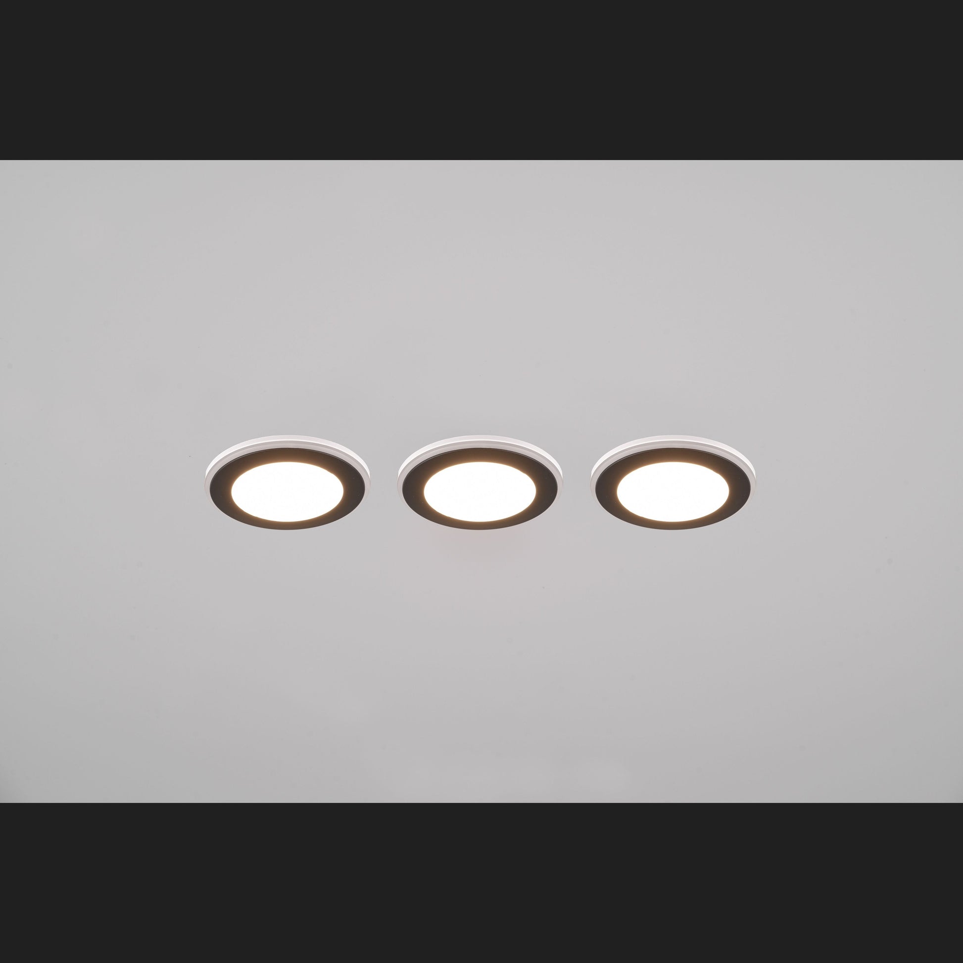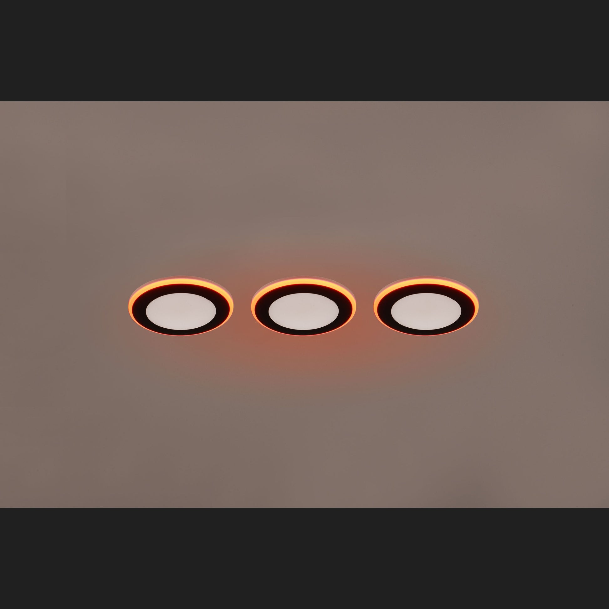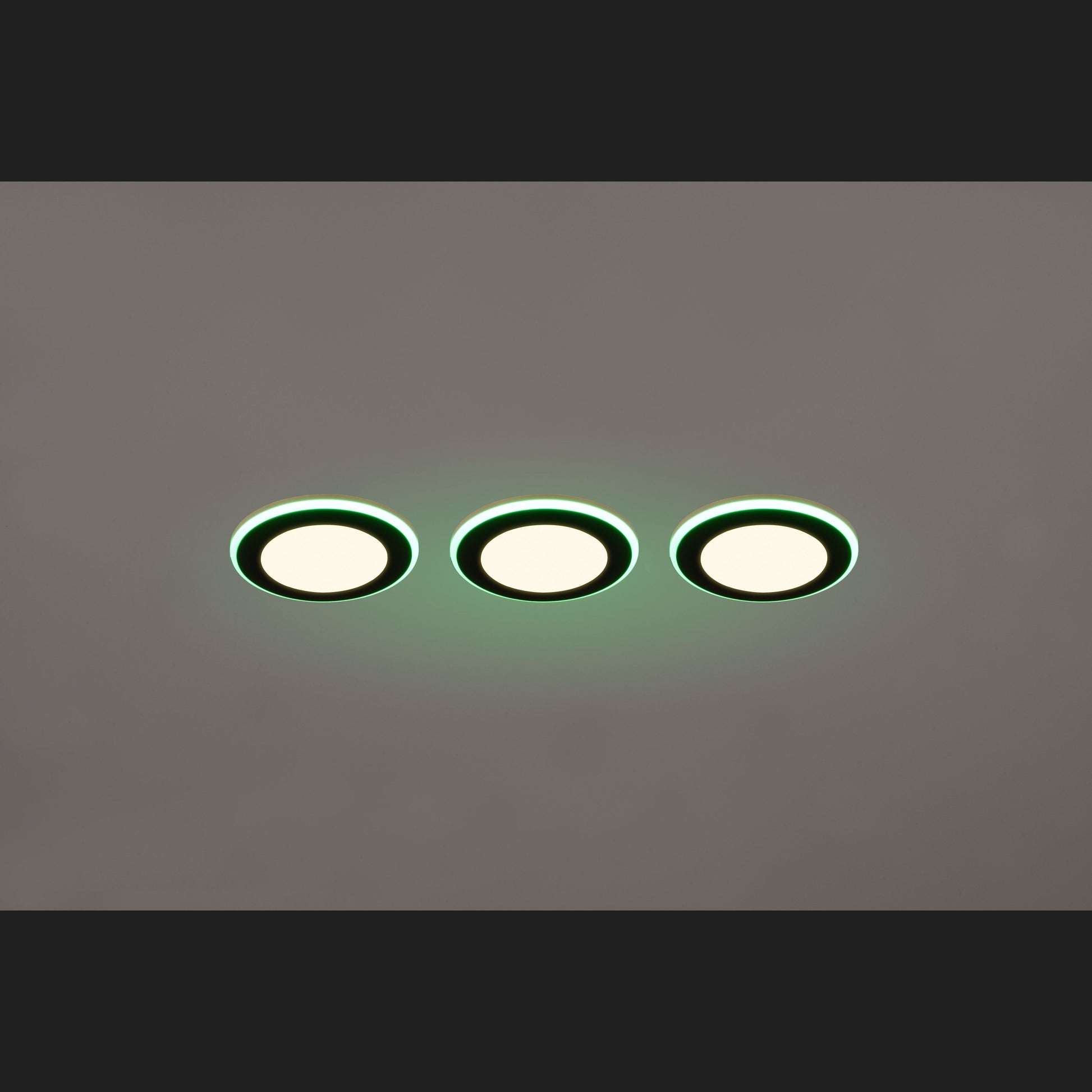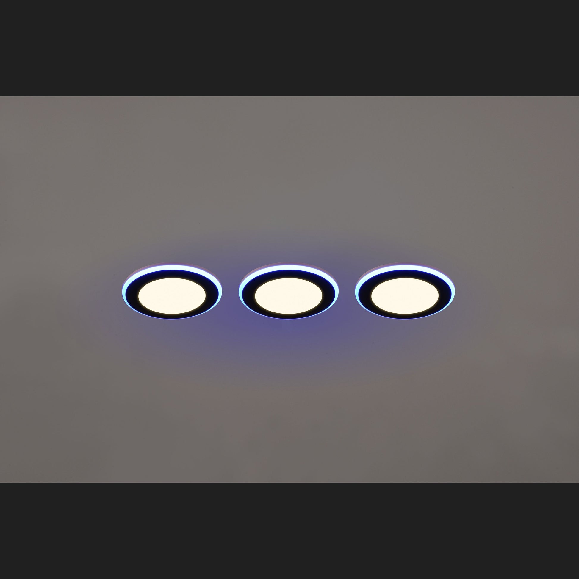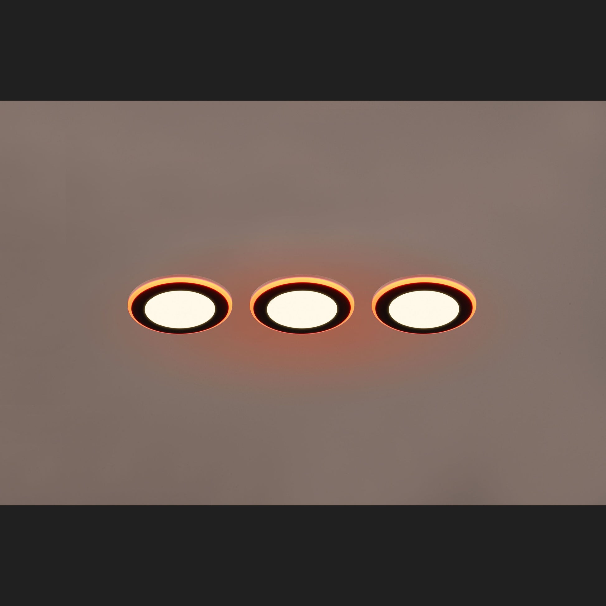 Sometimes there are design moments in your own four walls when all you need is the radiance of a pure light without the visual appearance of a luminaire. This is the moment for the ARGUS recessed light set of 3. The discreet luminaires fit easily into the ceiling or wall in all kinds of rooms and effectively emphasise the luminosity of their two light sources. The remote control included in the scope of delivery enables the two light sources to be switched separately and the brightness to be dimmed remotely. An integrated RGB colour changer adjusts the light colour of the outer illuminated surface to suit your requirements and gives your home a colourful and unique glow! The light in matt black can be combined with many interior styles. The luminaire also features modern LED technology, which is characterised by high light quality and energy efficiency. Compared to conventional halogen light sources, up to 80% of energy costs can be saved. With LED light sources, you also benefit from a long service life and low heat generation while protecting the environment.