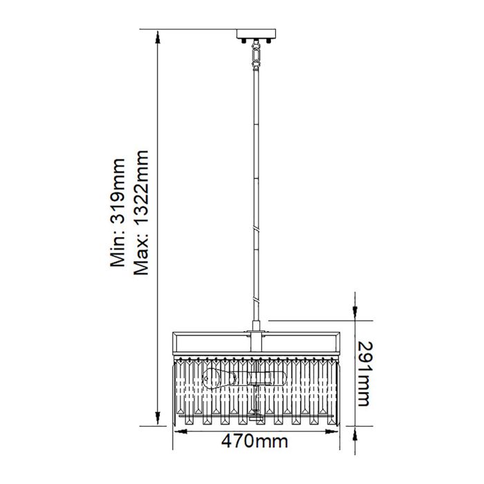 - Product Dimensions: H: 291mm D: 470mm Min/Max Drop: 319mm - 1322mm
