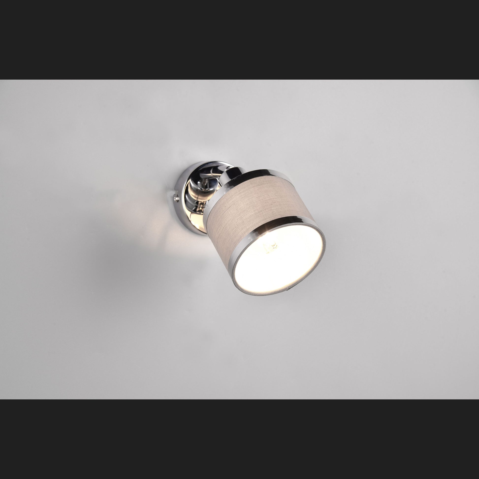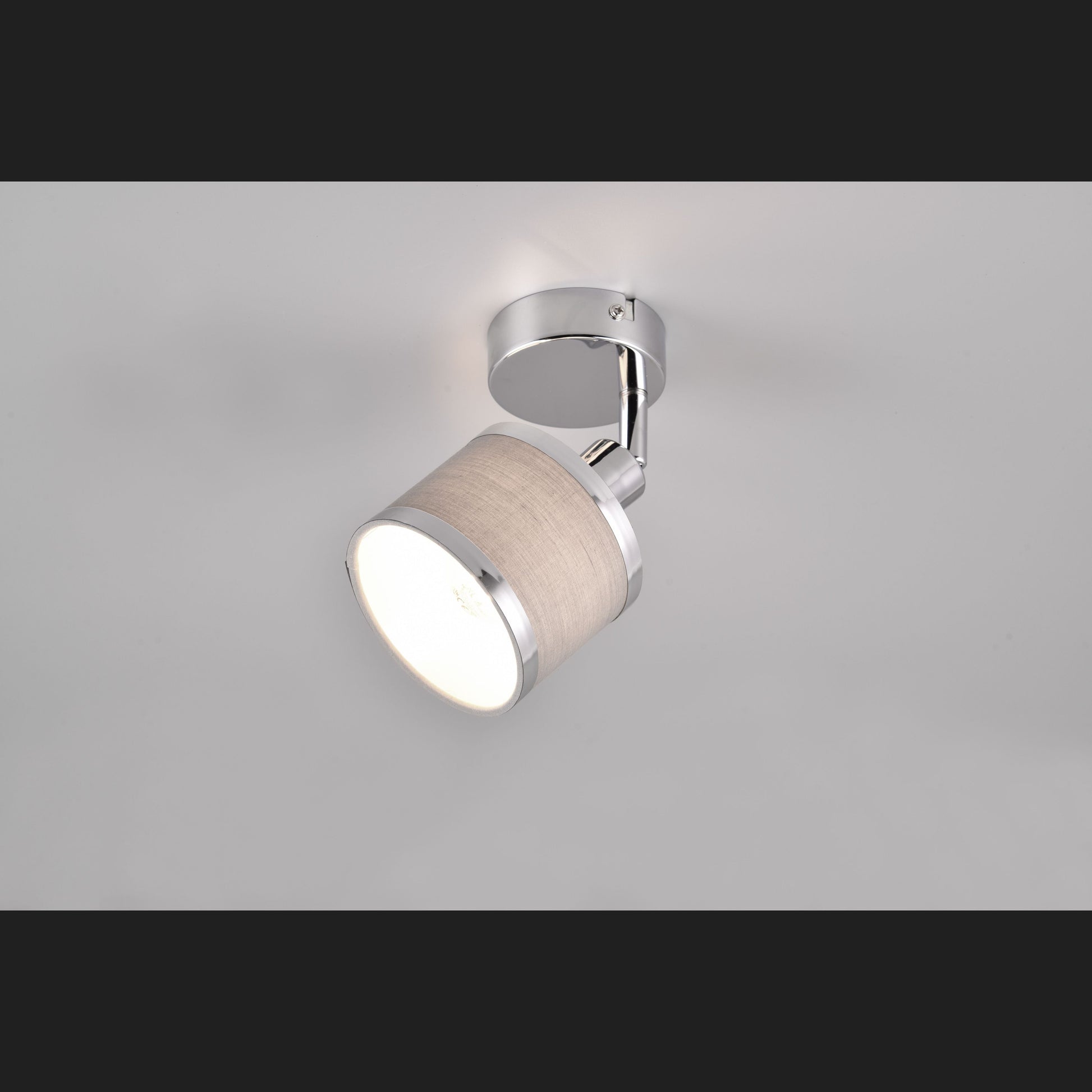 The AROSA luminaire series - warm flair combined with light! The combination of cylindrical shapes and fine textile fabric exudes elegance and luminous harmony. The single-flame spotlight also provides warm reflections and a cosy, inviting play of light on the ceiling or wall of your bedroom or living room. The chic colour nuances in chrome and grey add an individual touch to your home and underline the wow effect. The use of LED light sources is recommended for energy-saving lighting. These are an ideal alternative to conventional halogen light sources and offer high light quality and energy savings of up to 80%. With LED light sources, you also benefit from a long service life and low heat generation while protecting the environment.