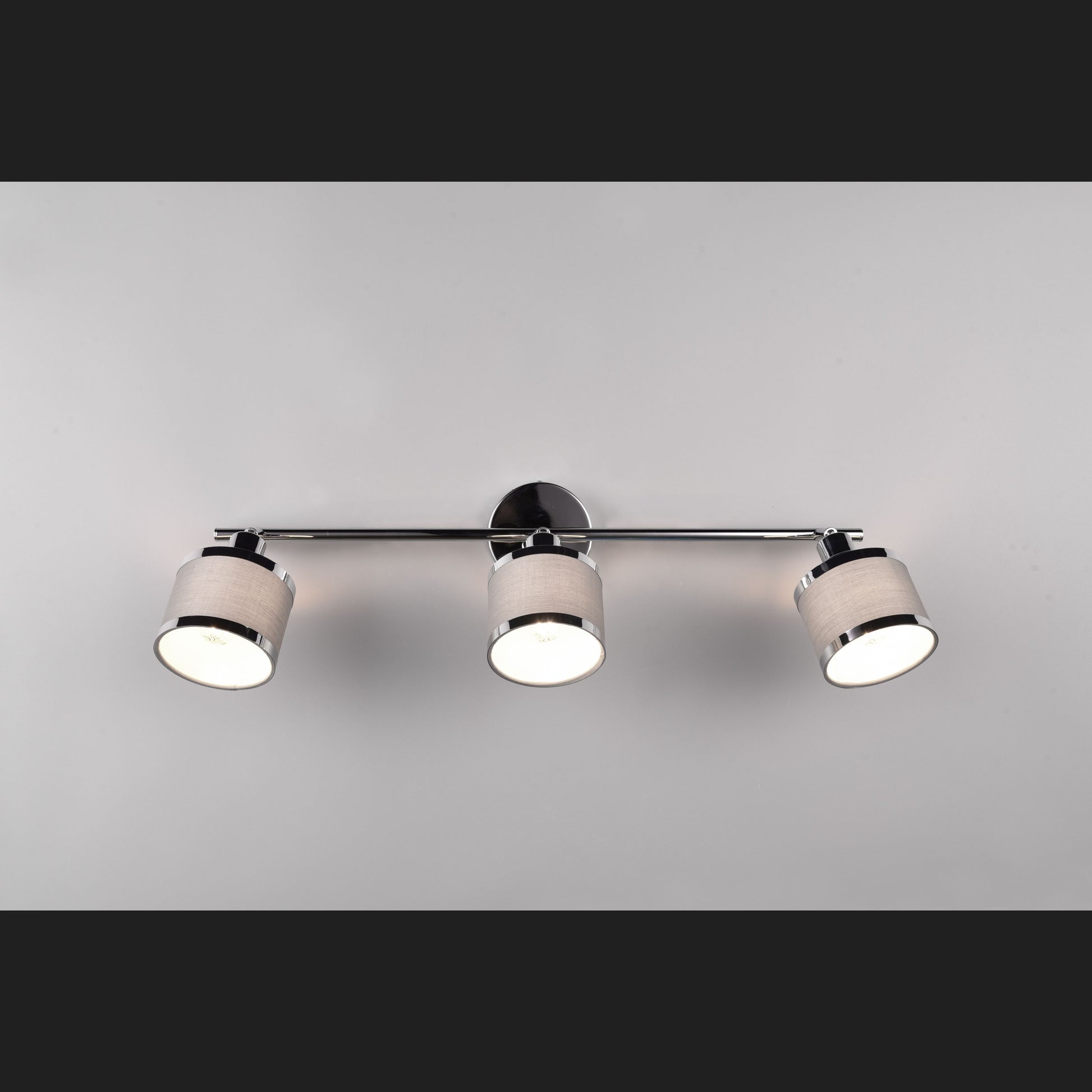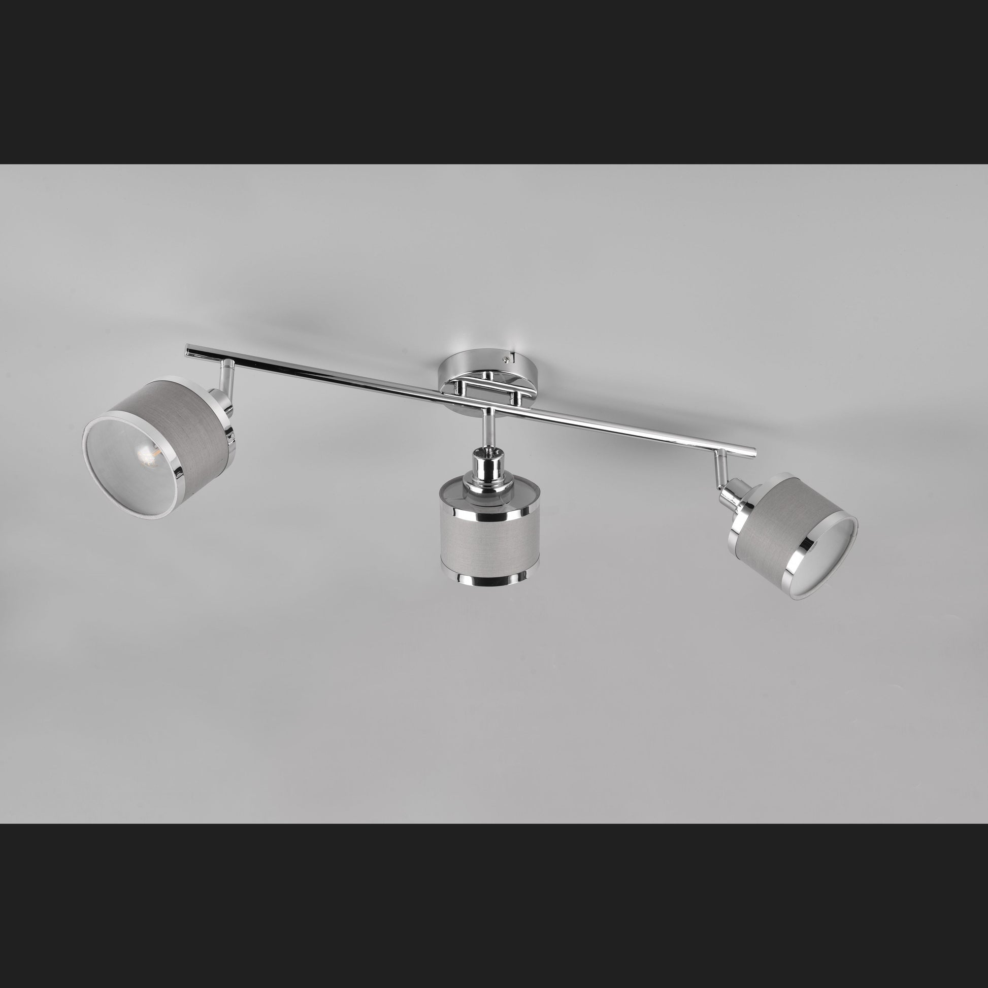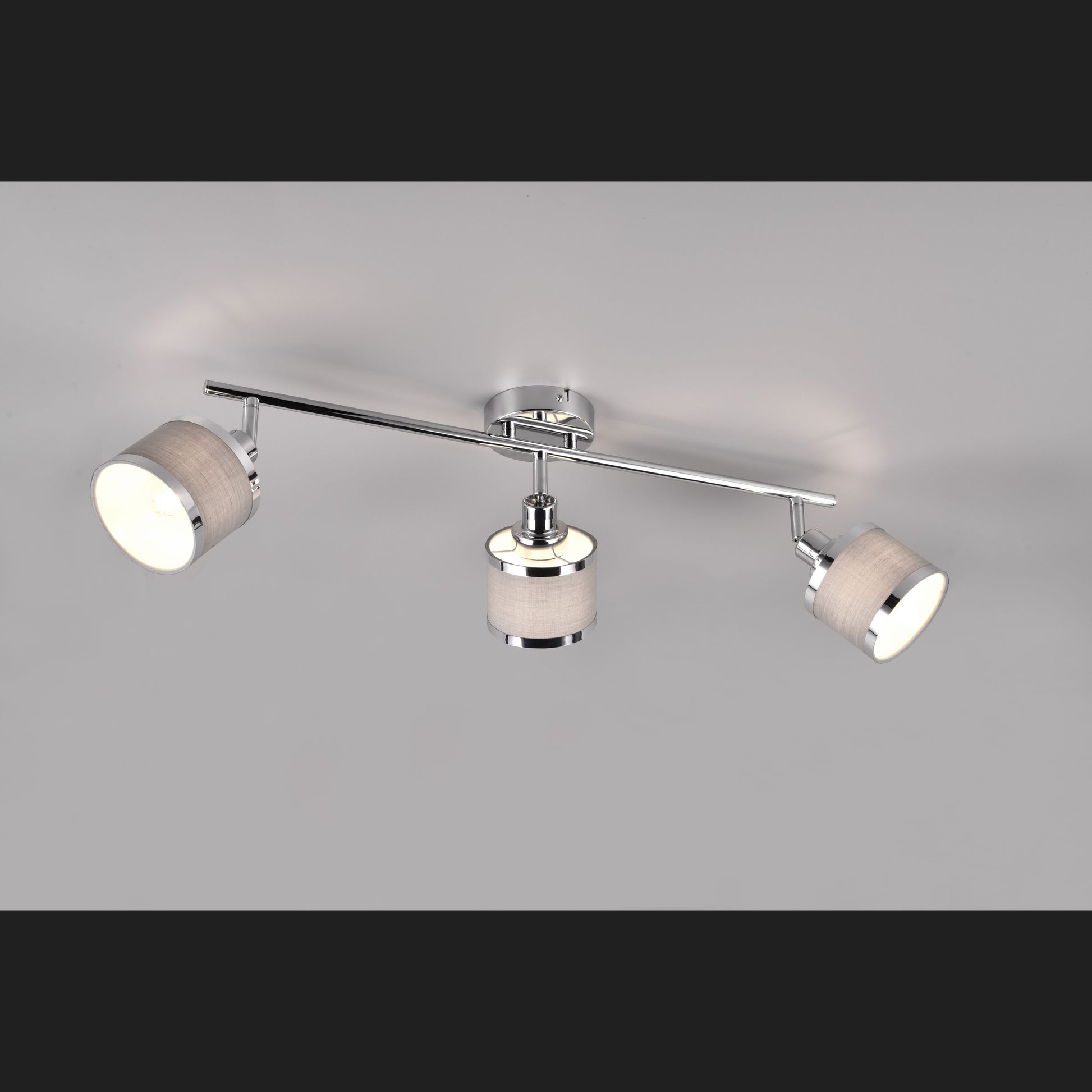 The AROSA luminaire series - warm flair combined with light! The combination of cylindrical shapes and fine textile fabric exudes elegance and luminous harmony. The three-lamp spotlight also provides warm reflections and a cosy, inviting play of light on the ceiling or wall of your bedroom or living room. The chic colour nuances in chrome and grey add an individual touch to your home and underline the wow effect. The use of LED light sources is recommended for energy-saving lighting. These are an ideal alternative to conventional halogen light sources and offer high light quality and energy savings of up to 80%. With LED light sources, you also benefit from a long service life and low heat generation while protecting the environment.