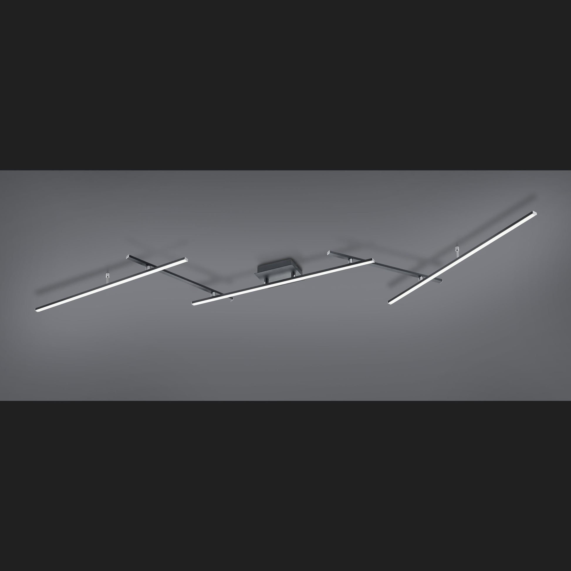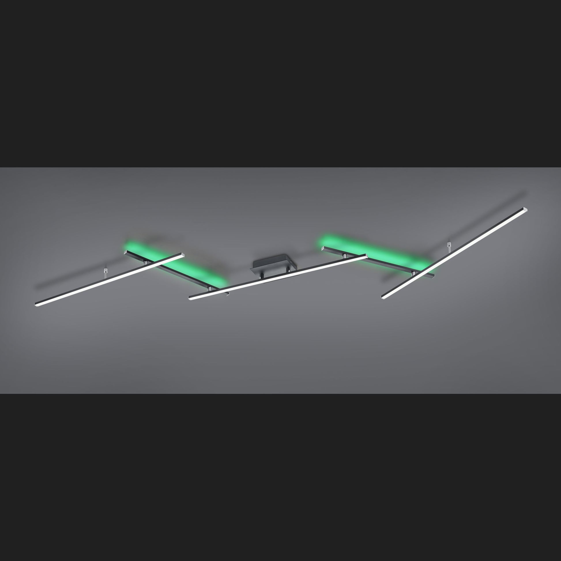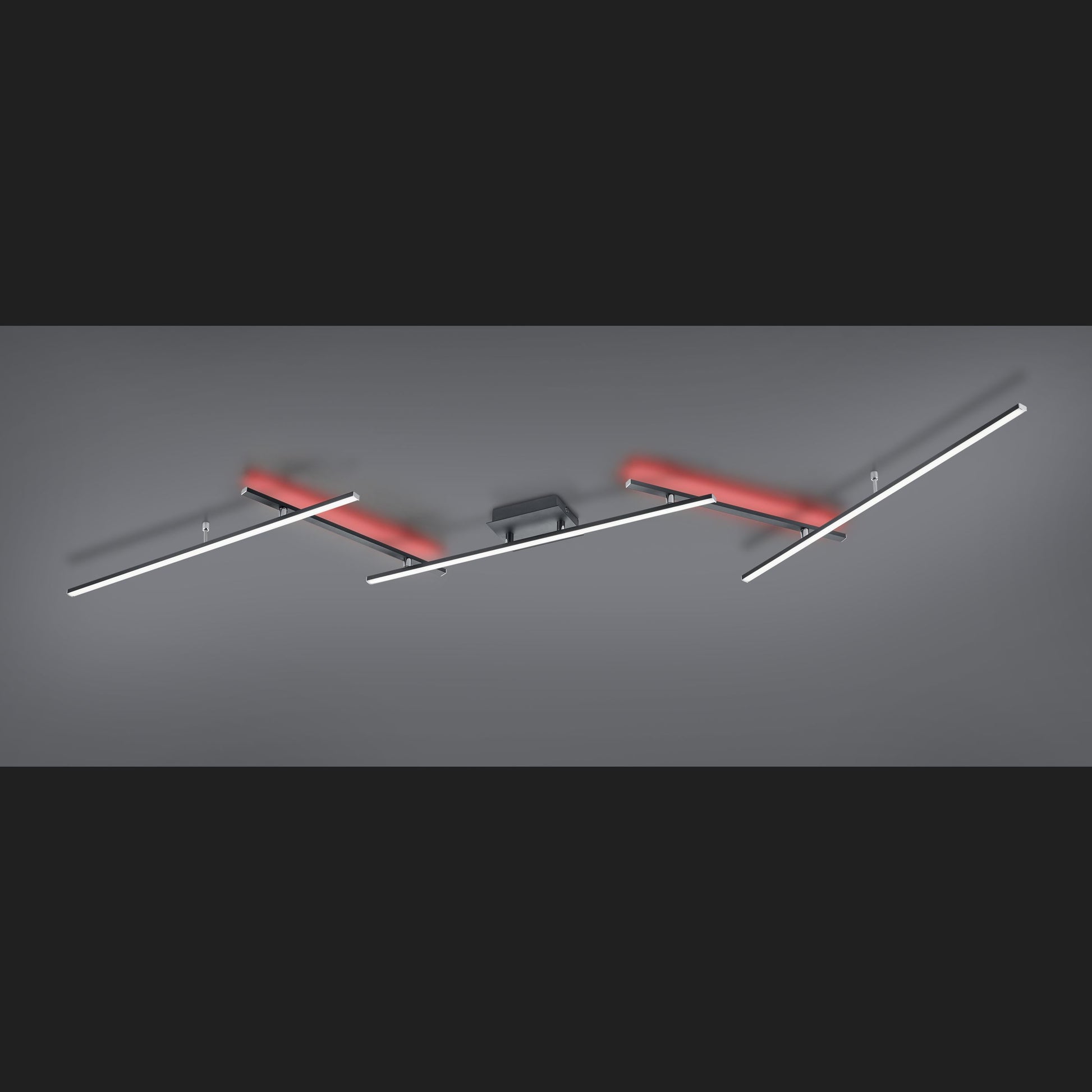 Lighting ideas with colour features. The ARVIN LED luminaire creates the right light for every mood and situation. Differently aligned and clearly arranged, the light elements can be adjusted in brightness and RGB colours as desired. Separately switchable indirect lighting and convenient remote control are further highlights. The matte black colour scheme leaves a modern, stylish appearance. In addition, the luminaire features modern LED technology, which is characterised by high light quality and energy efficiency. Compared to conventional halogen lamps, up to 80% of energy costs can be saved. In addition, LED light sources have a long service life, produce less heat and protect the environment.