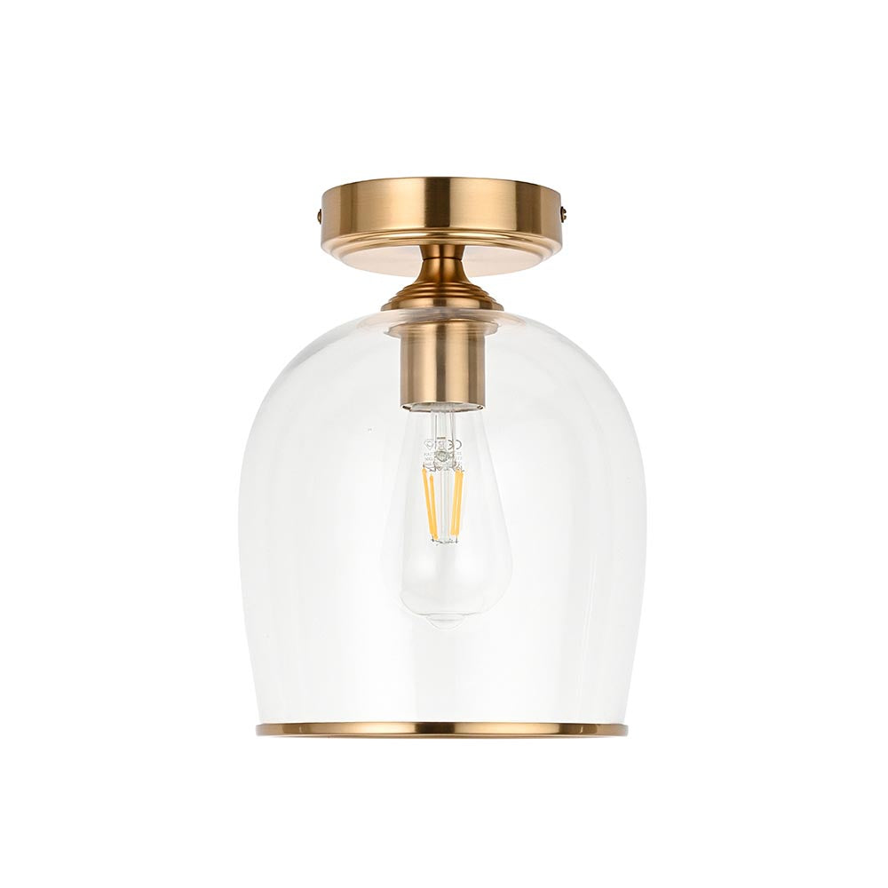 Simple yet striking, this single ceiling flush fitting features a clear domed glass shade trimmed with a classic metal edge, perfectly blending contemporary elegance with timeless charm. The exposed bulb design enhances ambient lighting while showcasing decorative filament bulbs beautifully. Ideal for low ceilings, hallways, kitchens, or utility spaces, it adds a refined touch without overwhelming the room.