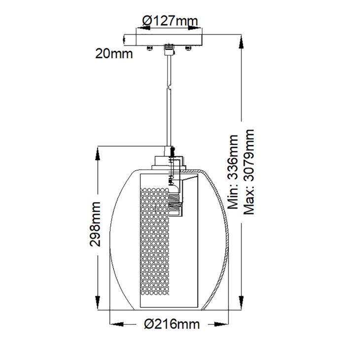 - Product Dimensions: H: 298mm D: 216mm Min/Max Drop: 336mm - 3079mm