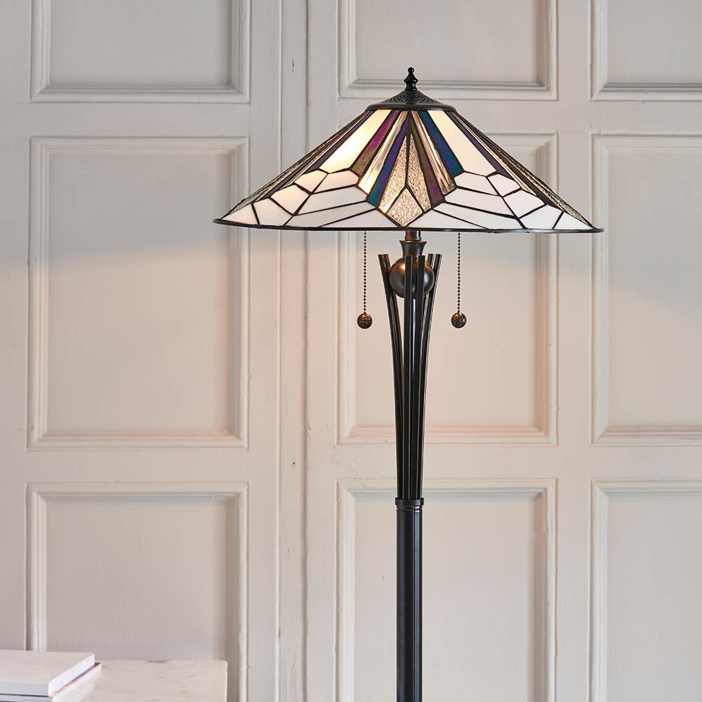 The Astoria floor light uses dynamic lines in true art deco style. It uses bevelled and textured glass producing a stunning light effect. Compatible with LED lamps and matching items available