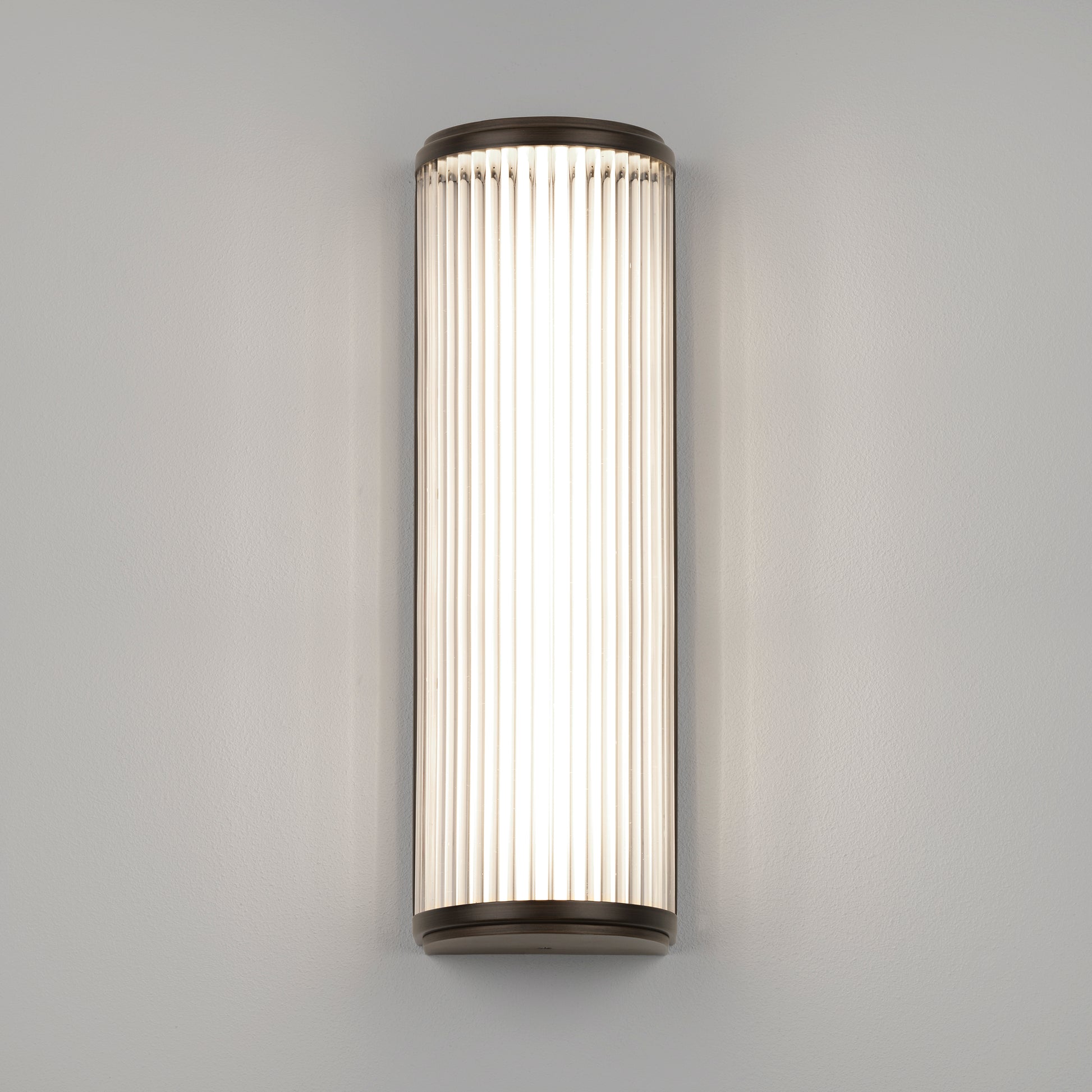 Our Versailles wall light is inspired by the Versailles design style of the 1930s, brought up to date with a modern dimmer. It's intended primarily for bathrooms, but the streamlined design complements any space. Made from individual glass rods with matt gold end caps, it provides functional, glare-free task lighting that exudes vintage glamour.