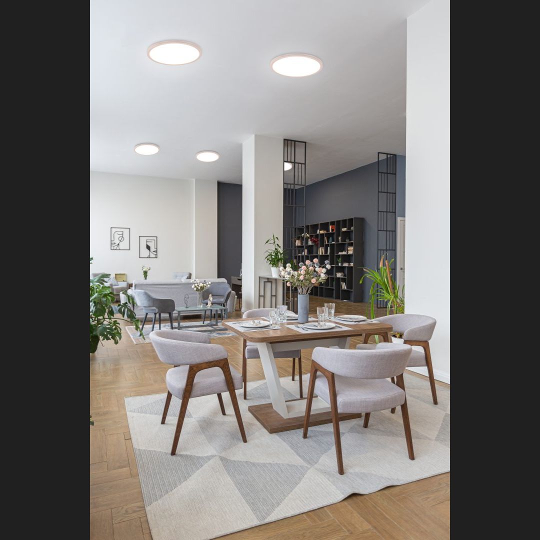 Good Mood Light - the AUREO ceiling light provides cosy light and pure harmony in your living space! The AUREO is characterised by its indirect light distribution and allows you to individually set soft, tasteful colours. This creates a cosy lighting atmosphere that has a grounding effect and positively influences our everyday lives. The remote control supplied allows you to adjust the brightness and light colour to suit your needs without having to leave your favourite spot in the living room or bedroom. The night light function rounds off the overall experience of the light. This creates a relaxed and cosy living atmosphere that gives you strength and peace! The matt white colour of the plastic and the geometric shape emphasise the understated yet effective lighting flair of the AUREO. The luminaire also features modern LED technology, which is characterised by high light quality and energy efficiency. Compared to conventional halogen light sources, up to 80% of energy costs can be saved. LED light sources also have a long service life, produce less heat and protect the environment.
