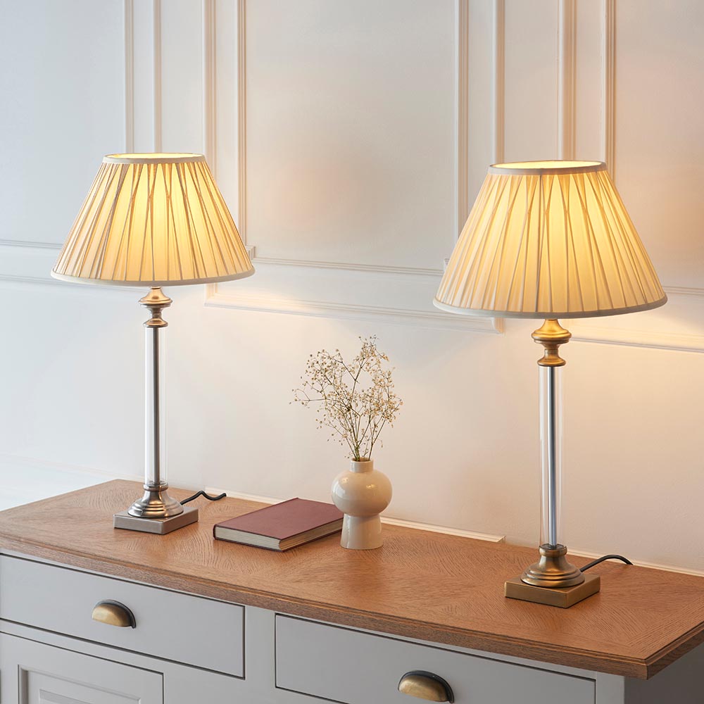 Avebury is a classically-inspired clear glass column lamp, with a timeless feel that compliments most classic and traditional spaces. Perfect when paired with one of our beautiful pleated fabric shades.