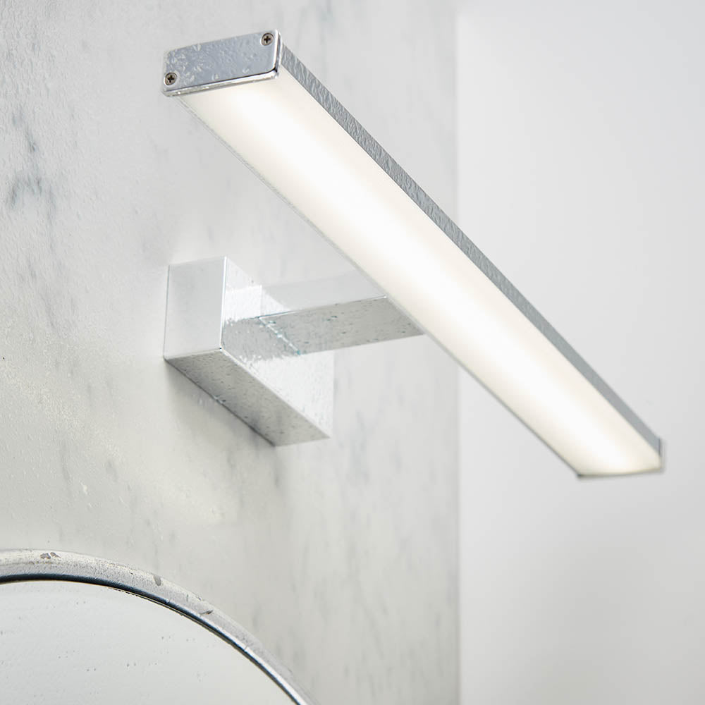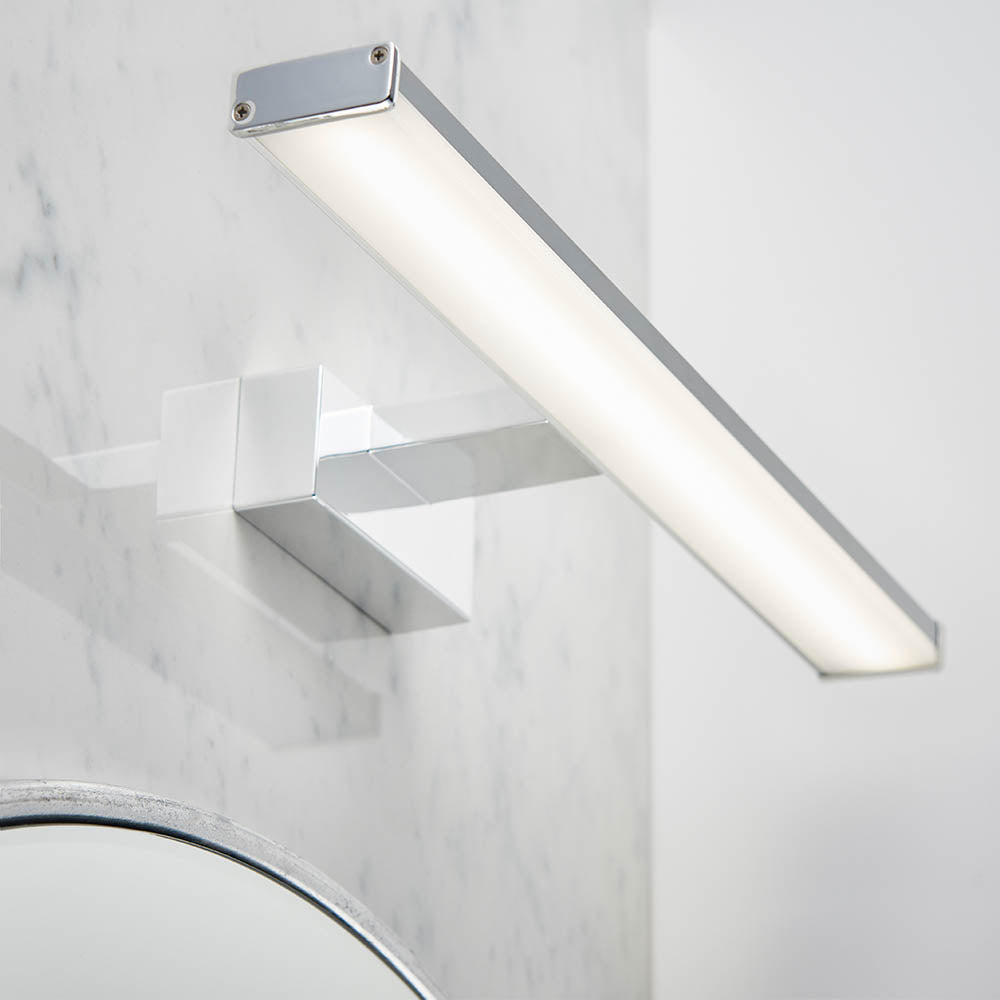 The minimalist Axis wall light features a chrome finish and is the perfect fitting for any modern bathroom. IP44 rated and designed with an integrated LED module, it will introduce a wash of bright light into your space.