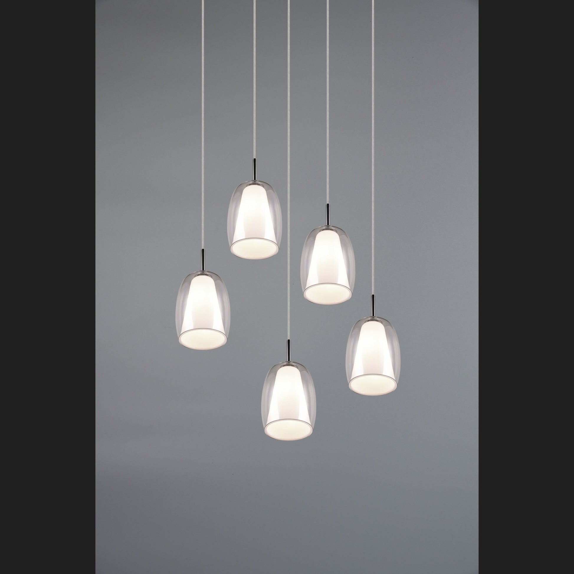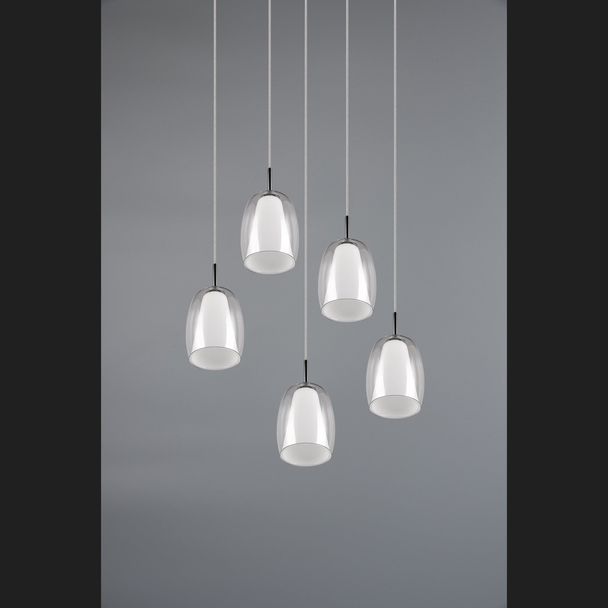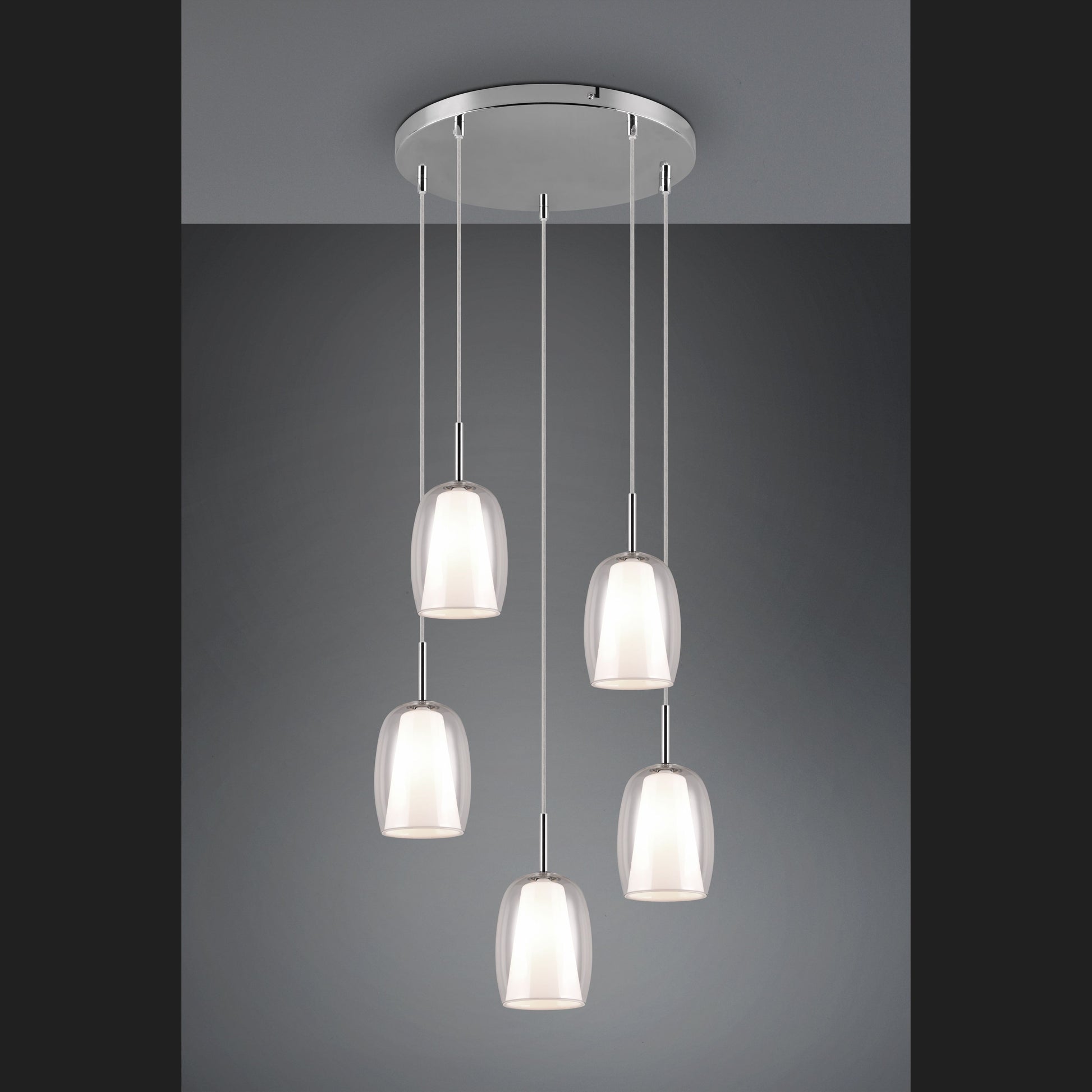 The BARRET pendant light sets stylish and decorative accents that perfectly reflect the current trend. With its two elegantly shaped glass lampshades per light source, it conjures up a particularly soft, atmospheric light above a dining or living room table. The use of chrome-coloured metal lends the light a timeless elegance, while the combination of the outer transparent glass shade and the inner white glass shade simultaneously radiates a touch of modernity. This allows the pendant light to blend effortlessly into a wide variety of furnishing styles. The use of LED light sources is recommended for energy-saving lighting. These are an ideal alternative to conventional halogen light sources and offer high light quality and energy savings of up to 80%. With LED light sources, you also benefit from a long service life and low heat generation while protecting the environment.