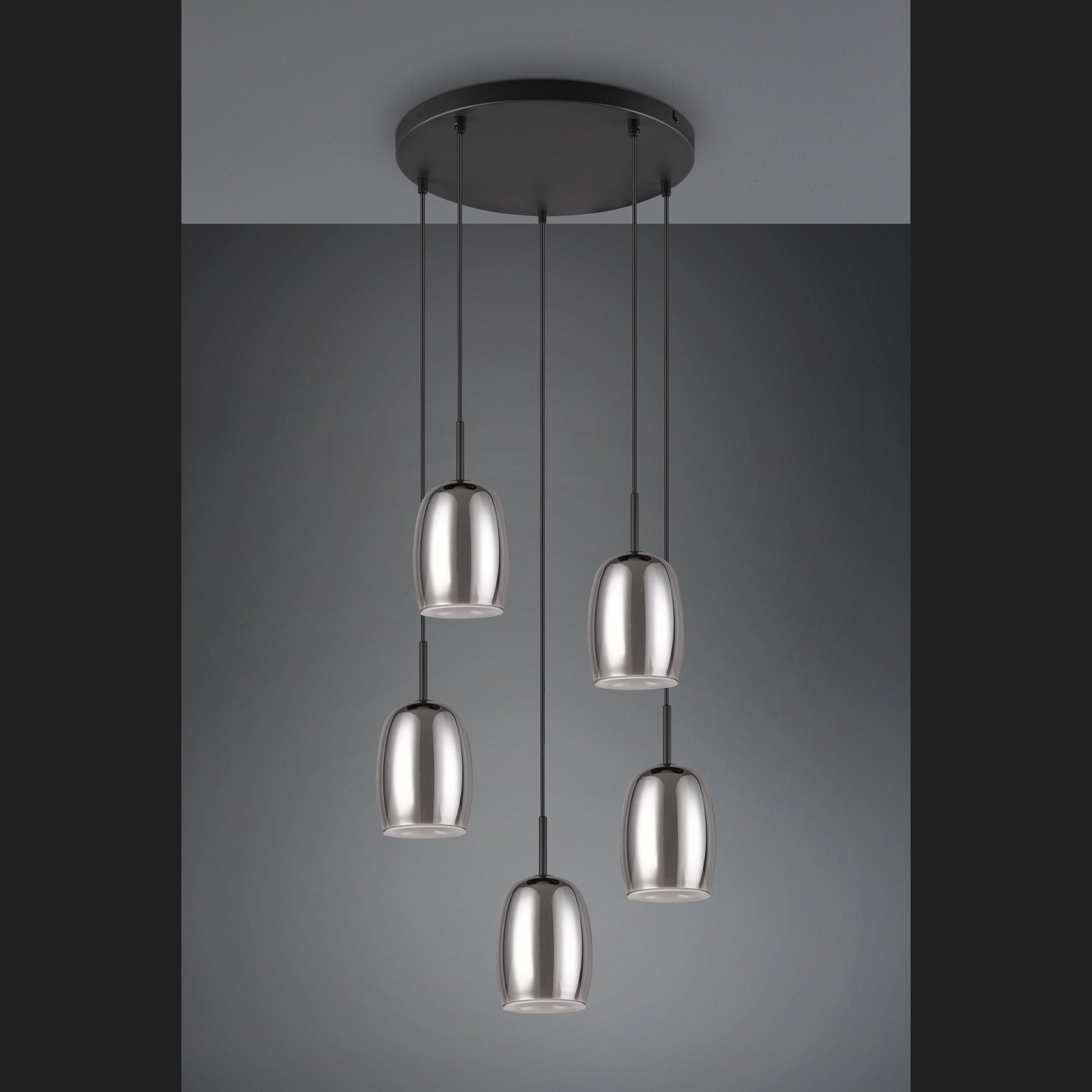 The BARRET pendant light sets stylish and decorative accents that perfectly reflect the current trend. With its two elegantly shaped glass lampshades per light source, it conjures up a particularly soft, atmospheric light above a dining or living room table. The use of black matt metal lends the light a timeless elegance, while the combination of the outer smoke-coloured glass shade and the inner white glass shade simultaneously radiates a touch of modernity. This allows the pendant light to blend effortlessly into a wide variety of interior styles. The use of LED light sources is recommended for energy-saving lighting. These are an ideal alternative to conventional halogen light sources and offer high light quality and energy savings of up to 80%. With LED light sources, you also benefit from a long service life and low heat generation while protecting the environment.
