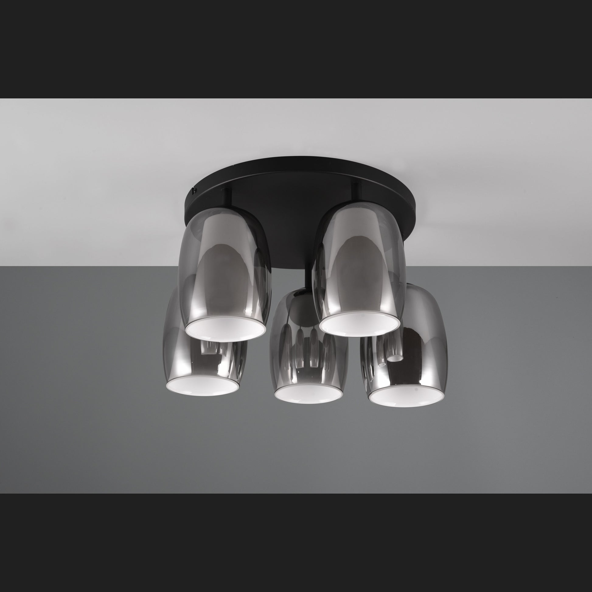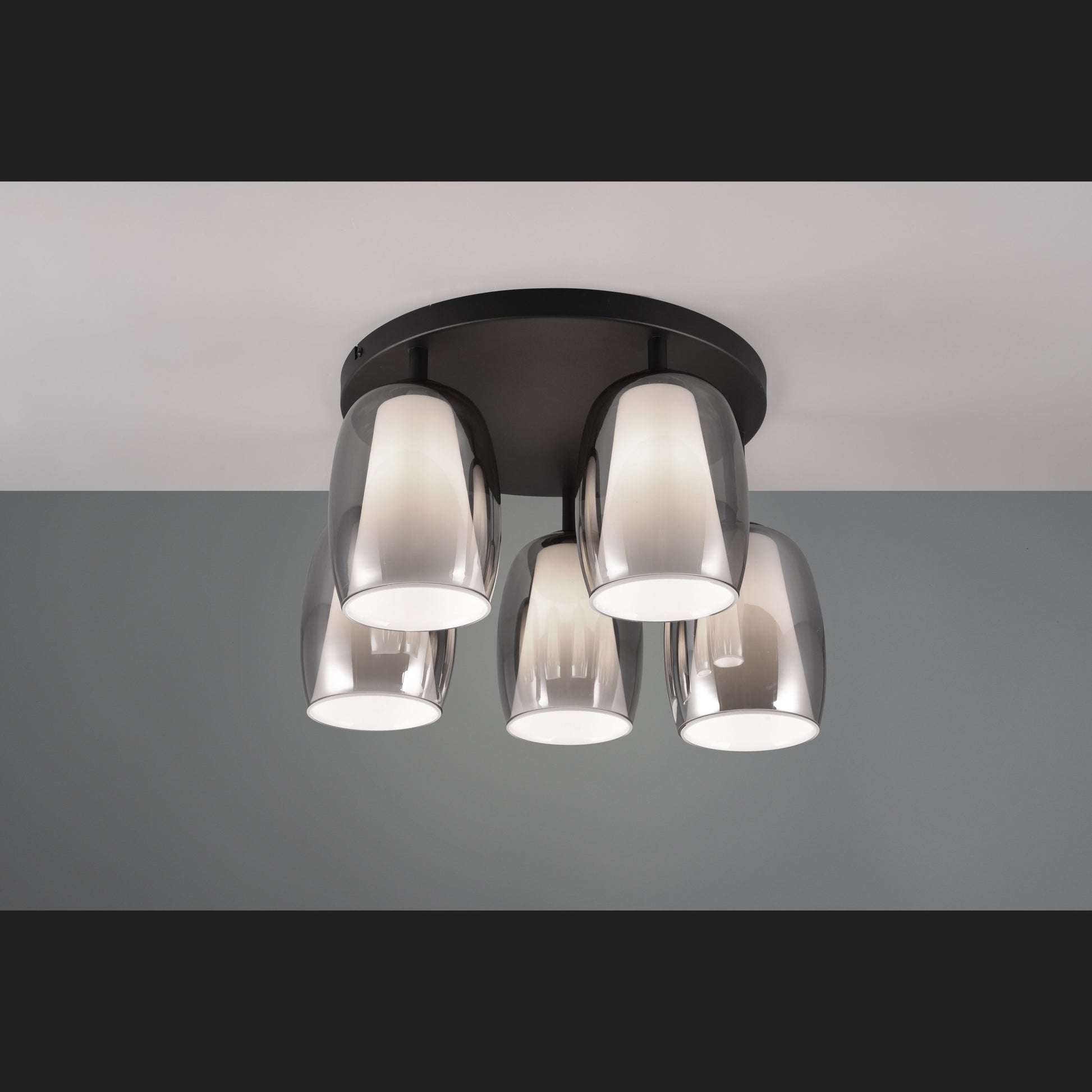 The BARRET ceiling light sets stylish and decorative accents that perfectly match the current trend. With its two elegantly shaped glass shades per light source, it conjures up a particularly soft, atmospheric light in your living or sleeping area. The use of black matt metal lends the light a timeless elegance, while the combination of the outer smoke-coloured glass shade and the inner white glass shade simultaneously radiates a touch of modernity. This allows the pendant light to blend effortlessly into a wide variety of interior styles. The use of LED light sources is recommended for energy-saving lighting. These are an ideal alternative to conventional halogen light sources and offer high light quality and energy savings of up to 80%. With LED light sources, you also benefit from a long service life and low heat generation while protecting the environment.