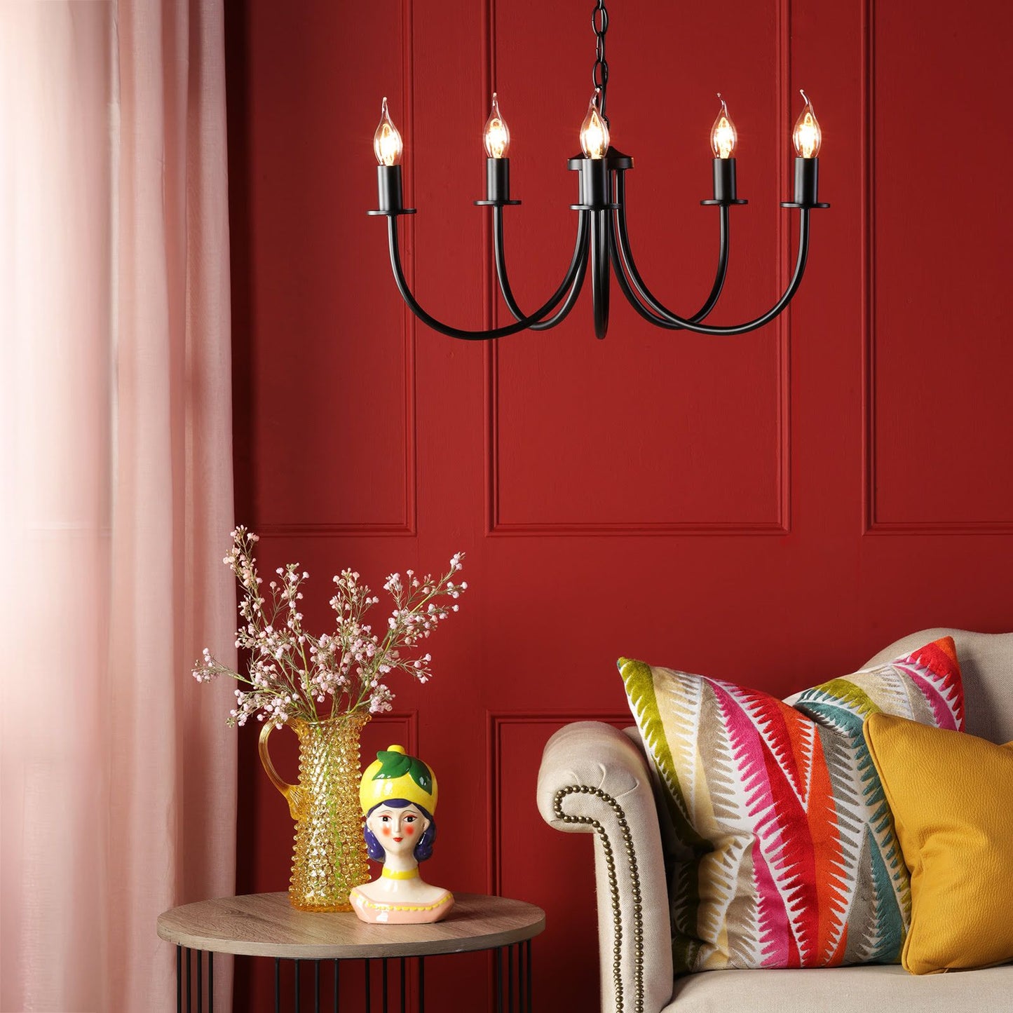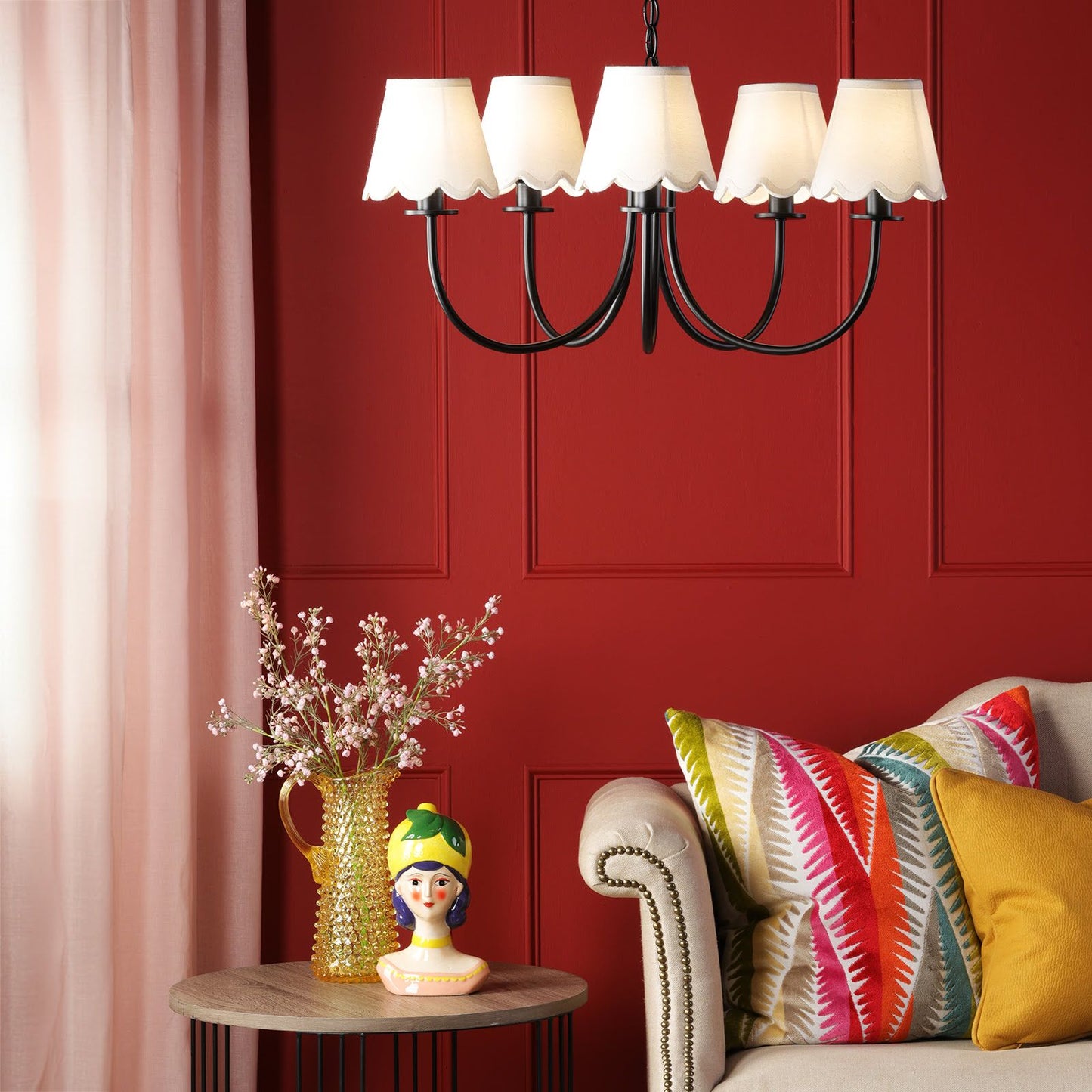 Illuminate your space with the Becca Pendant light, a versatile black chandelier from dar lighting that's sure to make a statement. This contemporary black pendant boasts five sweeping arms, creating an elegant silhouette that's both eye-catching and functional. Use it as-is for a sleek, modern look, or customise it with shades up to 20cm - we recommend pairing it with our Ikat or scallop shades for added flair. Perfect for dining rooms or entryways, this black pendant light offers endless possibilities to suit your style. Whether you're after a minimalist vibe or something more elaborate, the Becca Pendant light adapts effortlessly to your needs, making it a brilliant choice for any home.