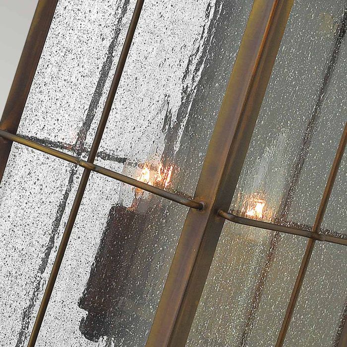 Made of Solid Brass, Bingham’s traditional style recalls a turn-of-the-century gas light reproduction. The vintage look is nautical in nature and recognises Hinkley’s origins on the shores of Lake Erie. The brass construction features clear seedy glass and a Sienna finish, while candelabra lamping completes the authentic style.