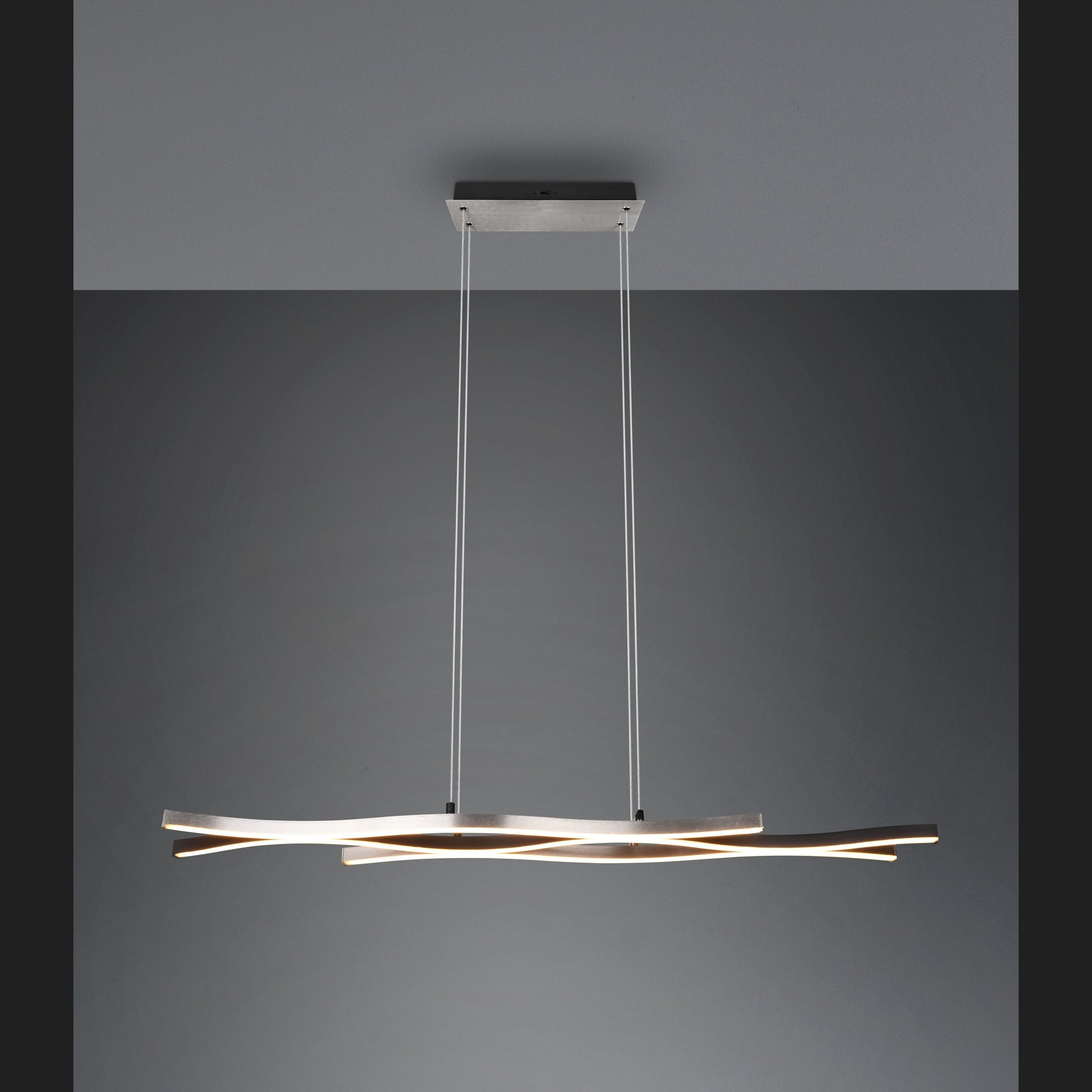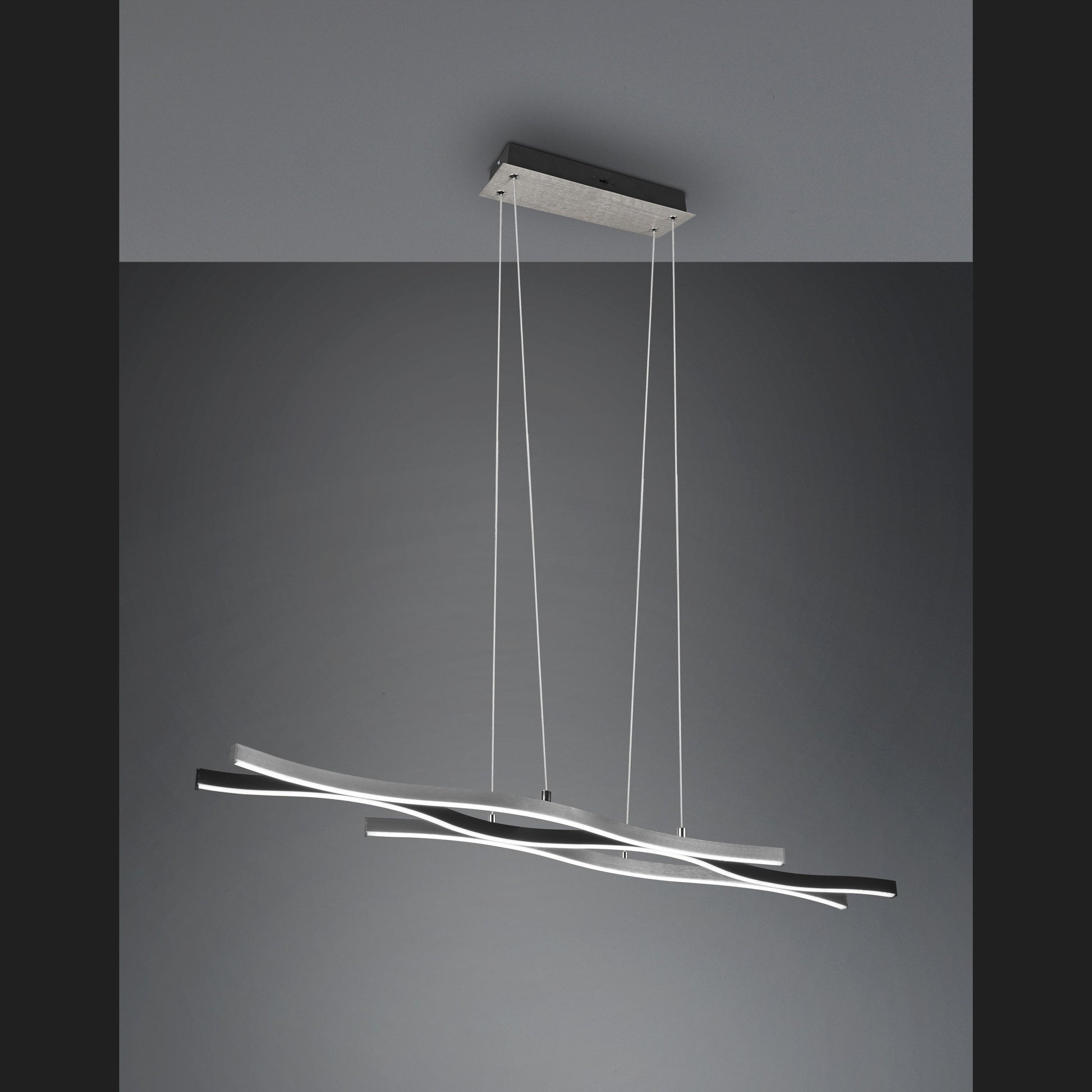 The beautiful curved shape of the BLAZE pendant luminaire sets the scene for your dining area in a targeted manner and also becomes a special eye-catcher above the dining table. The modern and elegant luminaire has a SWITCH dimmer, which allows the brightness to be graduated from 100% to 50% and 25% via a conventional light switch. In addition, the luminaire has a switch that allows the light colour (warm white, neutral white or daylight white) to be adjusted. The design of the luminaire is rounded off by the simple colour combination of brushed aluminium and matt black. In addition, the luminaire features modern LED technology, which is characterised by high light quality and energy efficiency. Compared to conventional halogen lamps, up to 80% of energy costs can be saved. In addition, LED lamps help you benefit from a long service life, low heat generation and at the same time protect the environment.