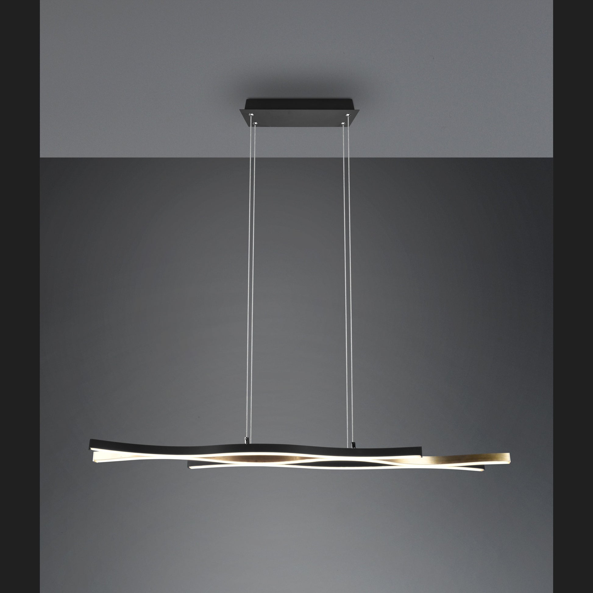 The beautiful curved shape of the BLAZE pendant luminaire sets the scene for your dining area in a targeted manner and also becomes a special eye-catcher above the dining table. The modern and elegant luminaire has a SWITCH dimmer, which allows the brightness to be graduated from 100% to 50% and 25% via a conventional light switch. In addition, the luminaire has a switch that allows the light colour (warm white, neutral white or daylight white) to be adjusted. The design of the luminaire is rounded off by the simple colour combination of matt brass and matt black. In addition, the luminaire features modern LED technology, which is characterised by high light quality and energy efficiency. Compared to conventional halogen lamps, up to 80% of energy costs can be saved. In addition, LED lamps help you benefit from a long service life, low heat generation and at the same time protect the environment.