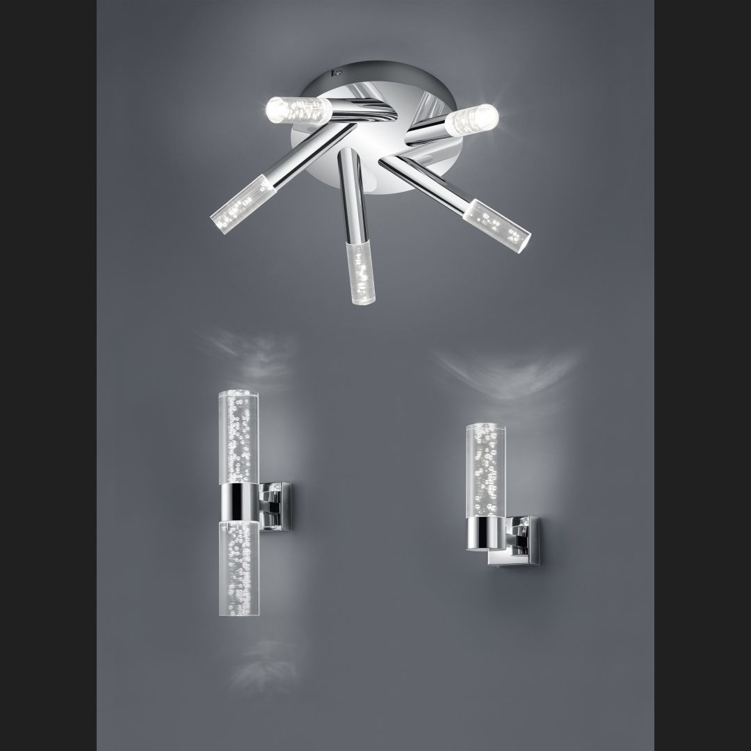 The BOLSA ceiling light attracts attention in every bathroom! Thanks to its shape in combination with the bubbles look, this light looks like a special designer piece. Thanks to its IP44 protection rating, it is ideal for damp rooms and also enhances their appearance. The light has a diameter of 42 cm. The chrome colour gives the luminaire a shiny appearance, which is rounded off by the decorative glass. In addition, the luminaire features modern LED technology, which is characterised by high light quality and energy efficiency. Compared to conventional halogen lamps, up to 80% of energy costs can be saved. In addition, LED light sources have a long service life, produce less heat and protect the environment.