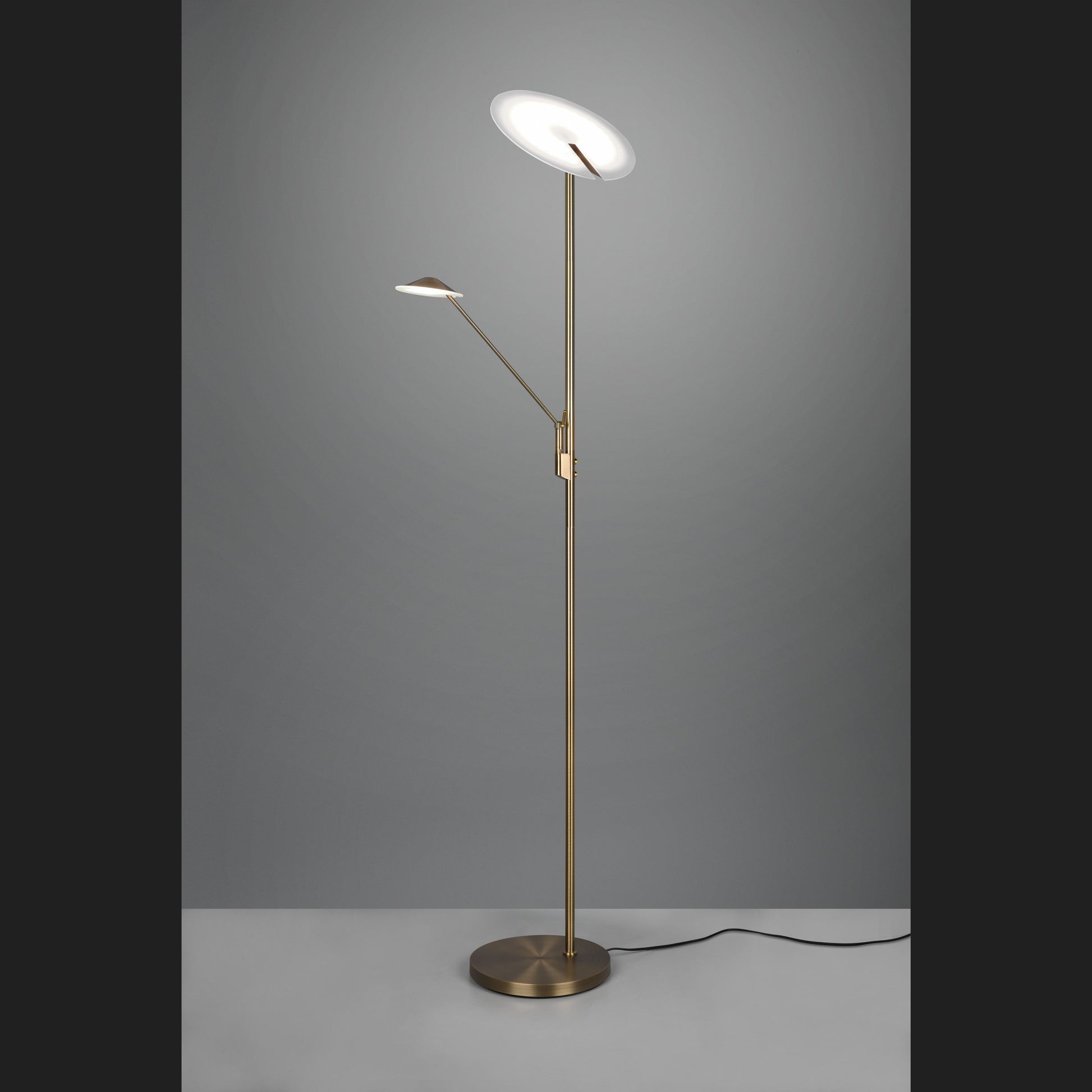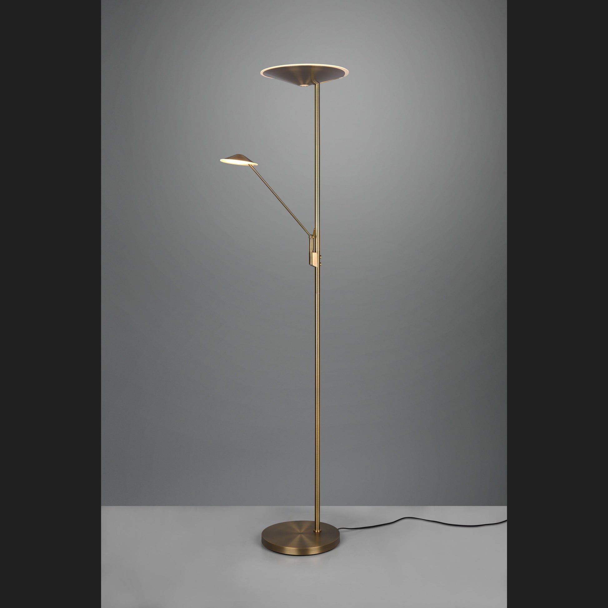 The modern BRANTFORD floodlight convinces with its practical functions and finds its optimal place next to the desk or the sofa. Brightness and light colour can be easily dimmed and adjusted via an integrated sensor dimmer. The main light source can also be switched separately from the reading arm so that you can use the light you need individually. The integrated memory function automatically resets the last set lighting scenario. In a classic old brass, the luminaire can be combined with many interior styles. In addition, the luminaire features modern LED technology, which is characterised by high light quality and energy efficiency. Compared to conventional halogen lamps, up to 80% of energy costs can be saved. In addition, with LED lamps you benefit from a long service life, low heat generation and protect the environment at the same time.
