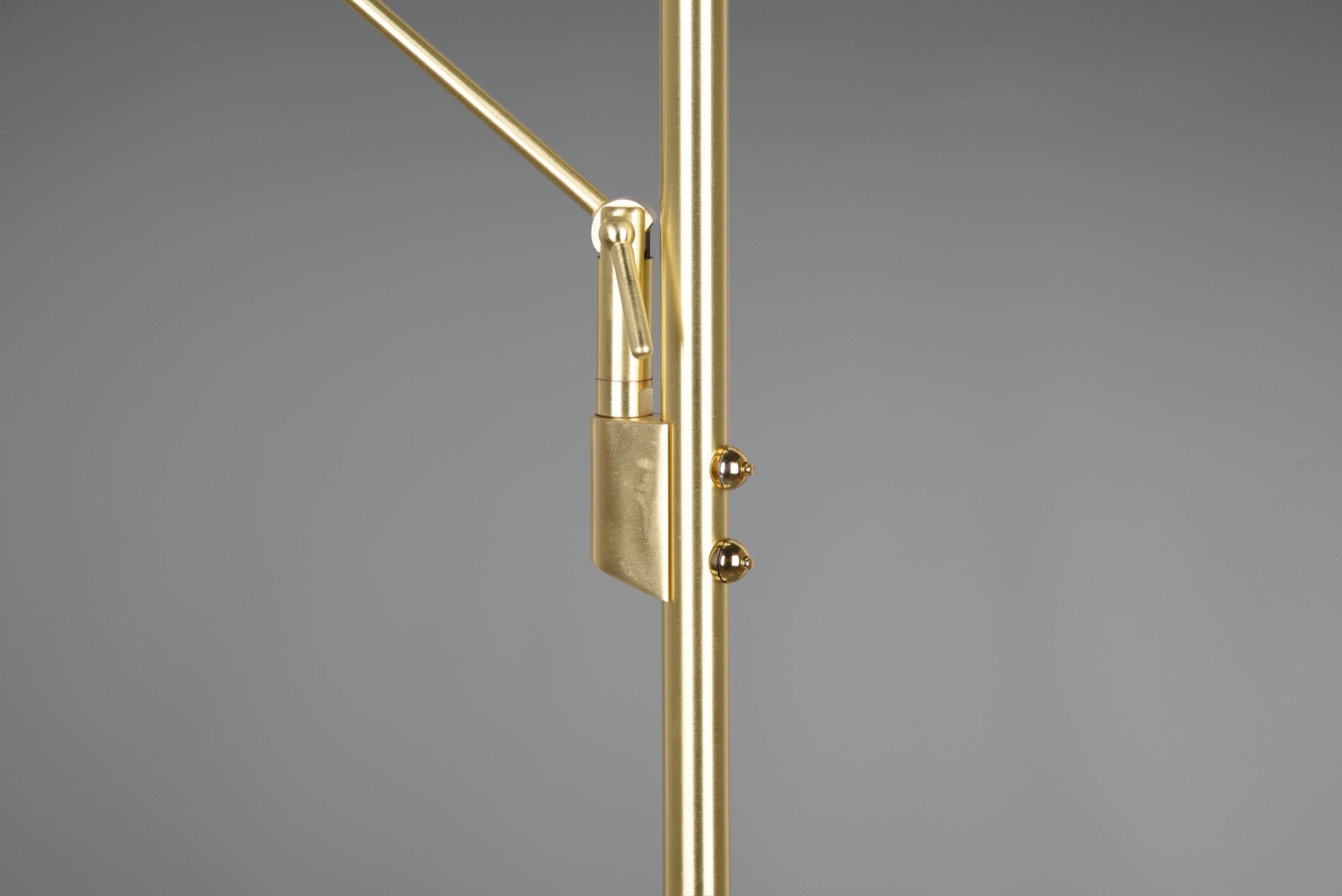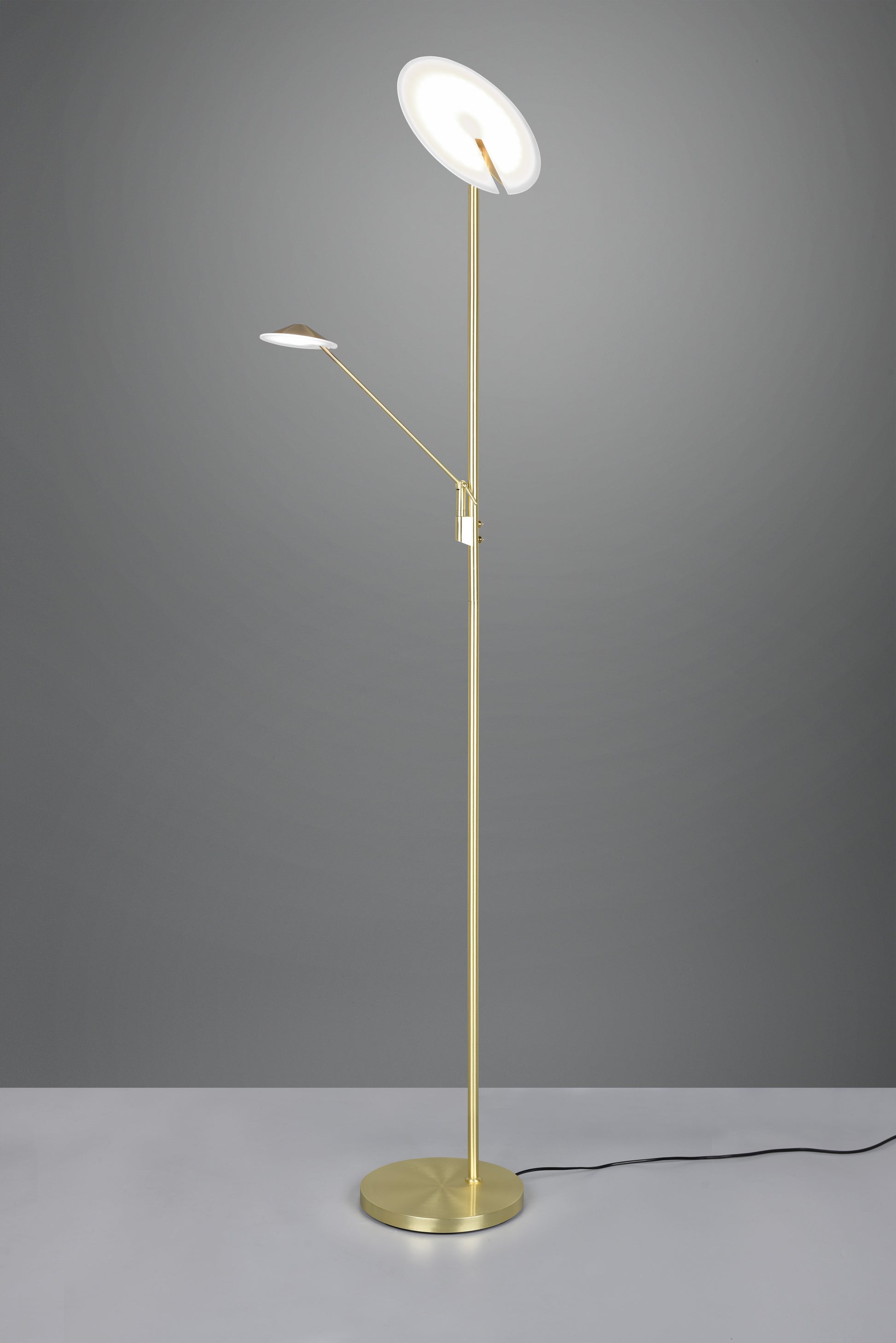 The modern BRANTFORD floodlight convinces with its practical functions and finds its optimal place next to the desk or the sofa. Brightness and light colour can be easily dimmed and adjusted via an integrated sensor dimmer. The main light source can also be switched separately from the reading arm so that you can use the light you need individually. The integrated memory function automatically resets the last set lighting scenario. In a modern matt brass finish, the light can be combined with many furnishing styles. In addition, the luminaire features modern LED technology, which is characterised by high light quality and energy efficiency. Compared to conventional halogen lamps, up to 80% of energy costs can be saved. In addition, with LED lamps you benefit from a long service life, low heat generation and protect the environment at the same time.