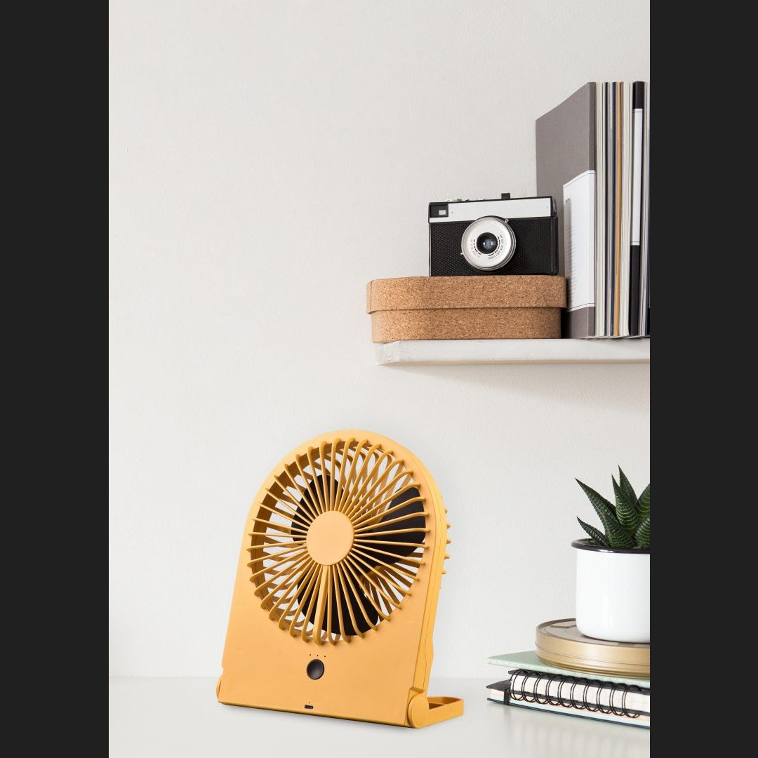 The modern BREEZY table fan is a must-have on hot summer days! The three speed levels as well as the tiltable alignment option of the fan enable the targeted alignment as well as the ideal distribution of the room air in your office, bedroom or living room. Thanks to the integrated battery, which can be easily charged via USB-C connection, the fan can be used flexibly without a cable and offers a wide range of application options. The fan is in Illuminate Yellow and blends skilfully into a wide variety of interior styles.