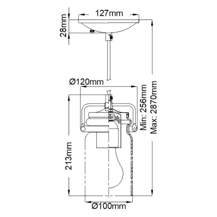 - Product Dimensions: H: 213mm D: 120mm Min/Max Drop: 256mm - 2870mm