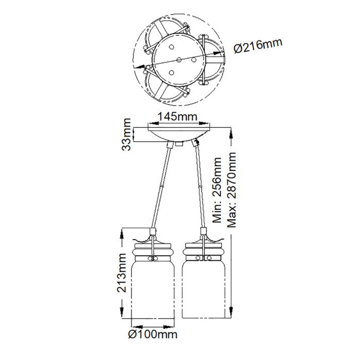 - Product Dimensions: H: 197mm D: 216mm Min/Max Drop: 256mm - 2870mm