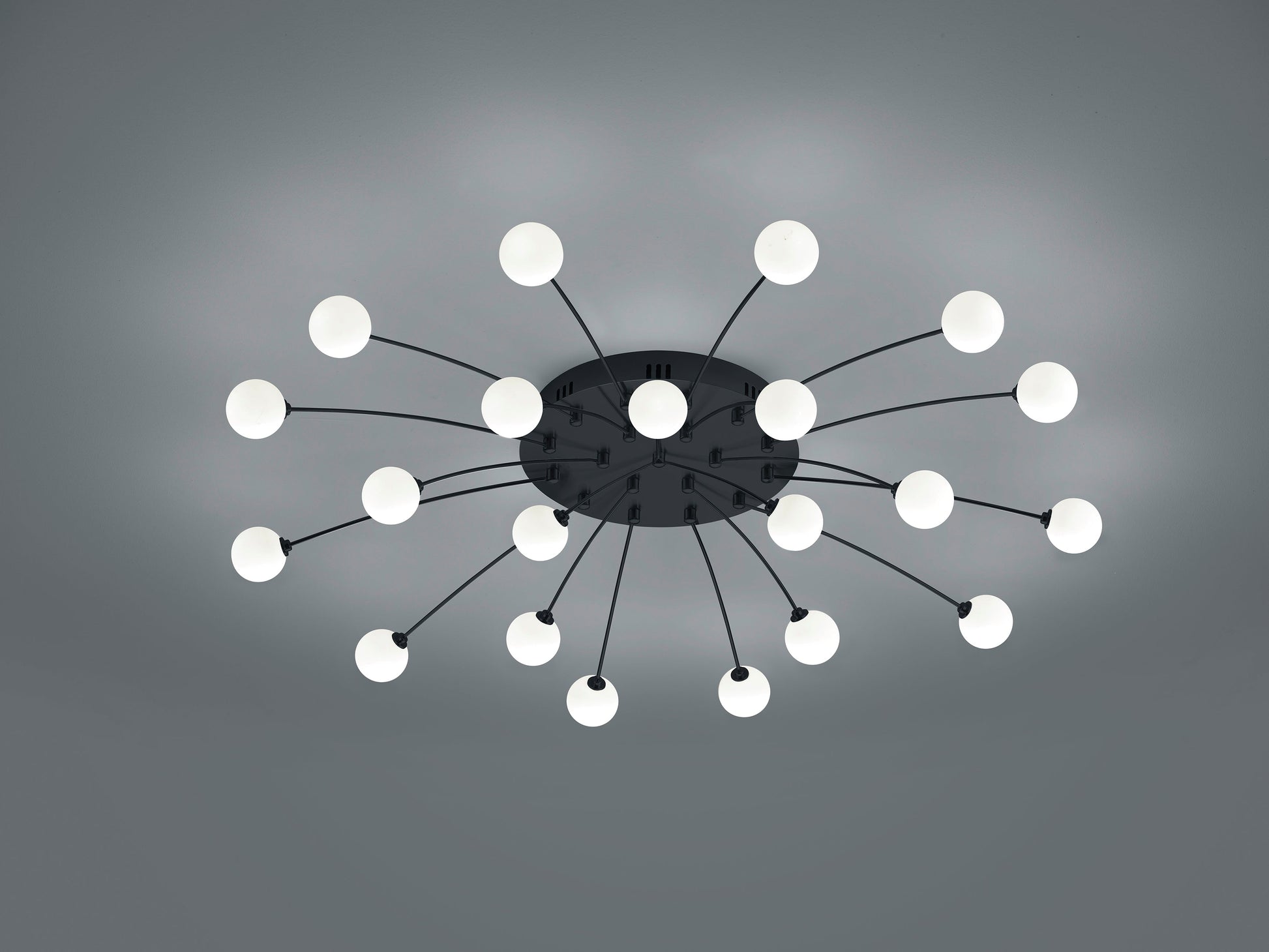Anyone looking for decorative light will be thrilled by the BULLET. Due to its eye-catching design, the ceiling light is perfectly suited as a decorative element and provides exciting light accents. The integrated SWITCH dimmer also allows the brightness to be graduated from 100% to 50% and 25% via a conventional light switch. Thanks to the colour design in matt black in combination with white glass shades, the luminaire leaves a modern appearance that can be integrated into almost all furnishing styles. In addition, the luminaire features modern LED technology, which is characterised by high light quality and energy efficiency. Compared to conventional halogen lamps, up to 80% of energy costs can be saved. In addition, LED light sources have a long service life, produce less heat and protect the environment.
