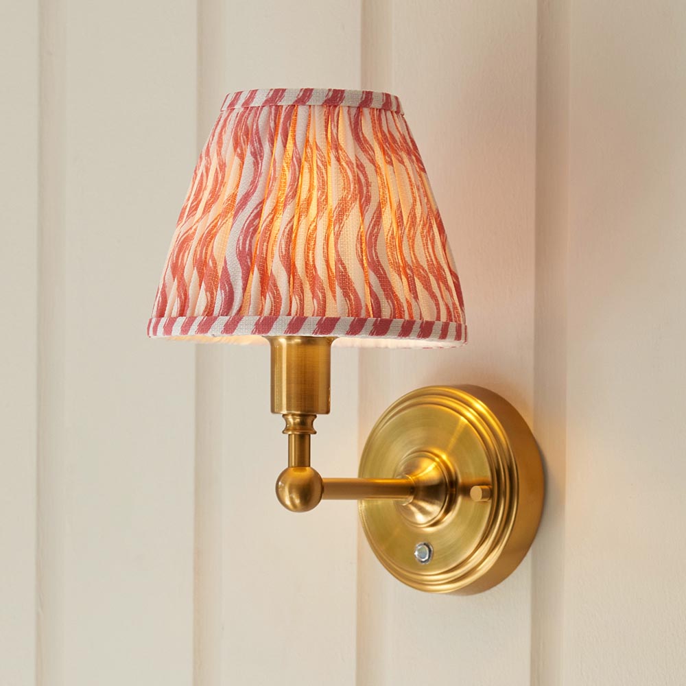 Not tied down by the need for a power cable, this portable, battery operated, rechargeable 3 stage touch dimmer wall light enables you to select your own level of light and can be fixed to any wall you choose. Classic in style and finished in aged brass making it easy to place around your home. Taking just 5.5 hours to fully charge and giving up to 36 hours of continuous light. Fix to shelving, hallway walls, in places where other lights cannot reach; the perfect versatile addition to your home. Finished with our bright coral pink 16cm Ripple shade for the perfect timeless style.