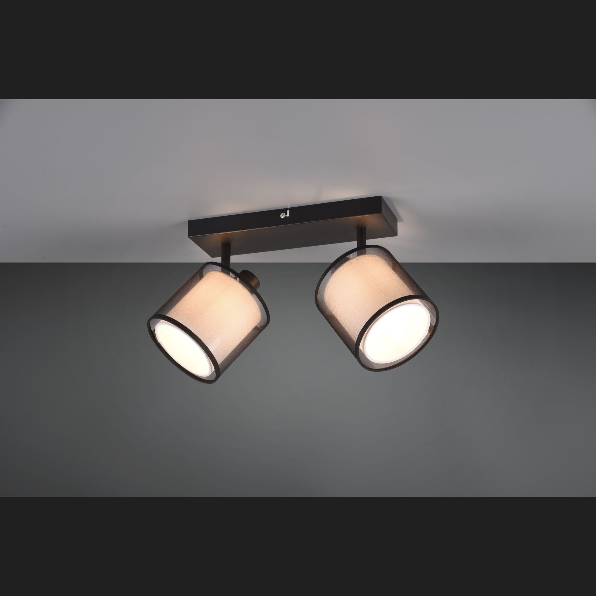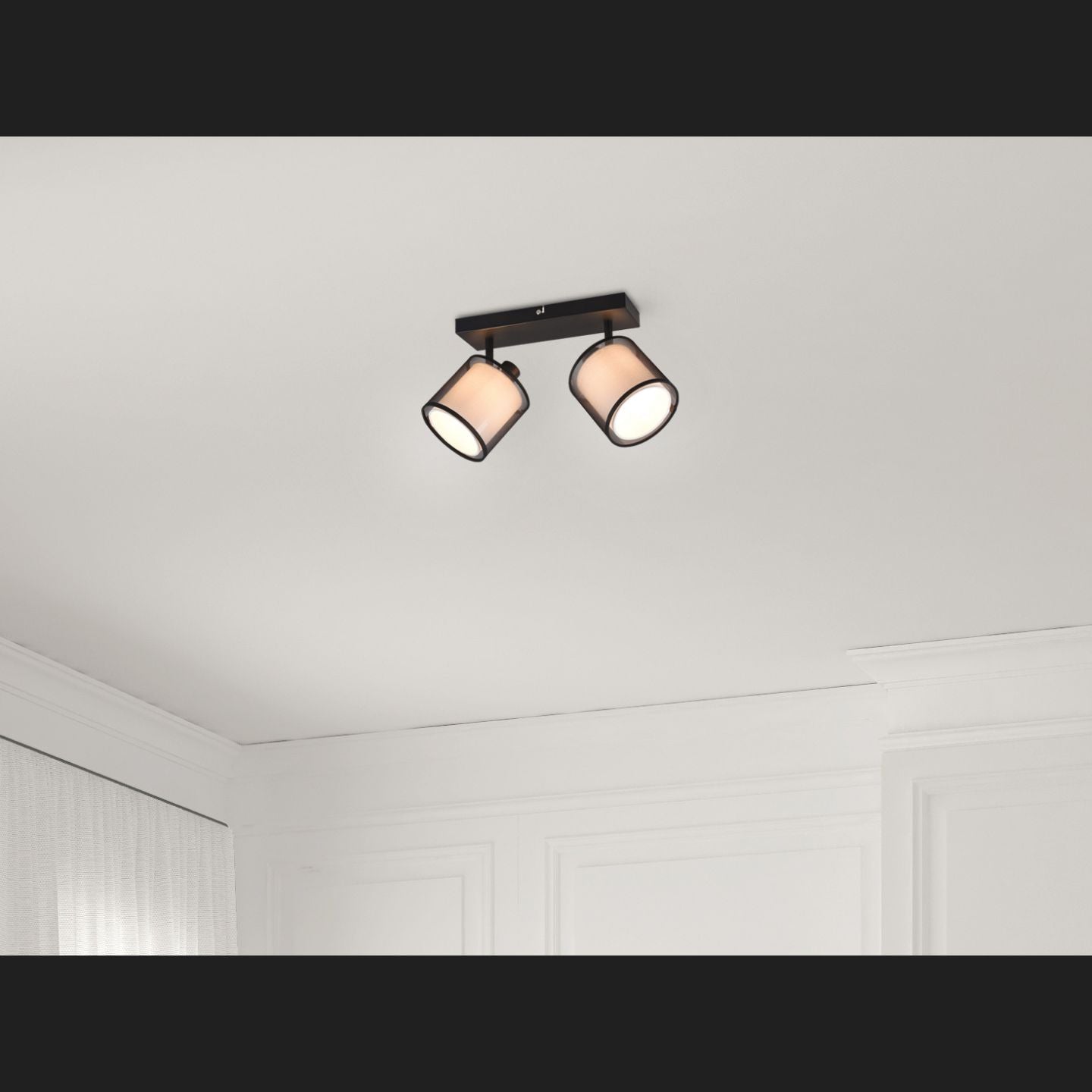 The luminaires of the BURTON series with their textile shades are the epitome of cosiness. The homely light of the two-lamp ceiling lamp, which conjures up a cosy ambience thanks to the two different coloured shades, sets special light accents wherever they are desired and needed. The modern combination of an inner white fabric shade and an outer transparent black plastic shade looks individual as well as refreshing and can be integrated into modern living styles in many ways. For energy-saving lighting, it is recommended to use an LED illuminant. These are an optimal alternative to conventional halogen lamps and stand for a high quality of light and energy savings of up to 80%. In addition, LED lamps help you benefit from a long service life, low heat generation and at the same time protect the environment.