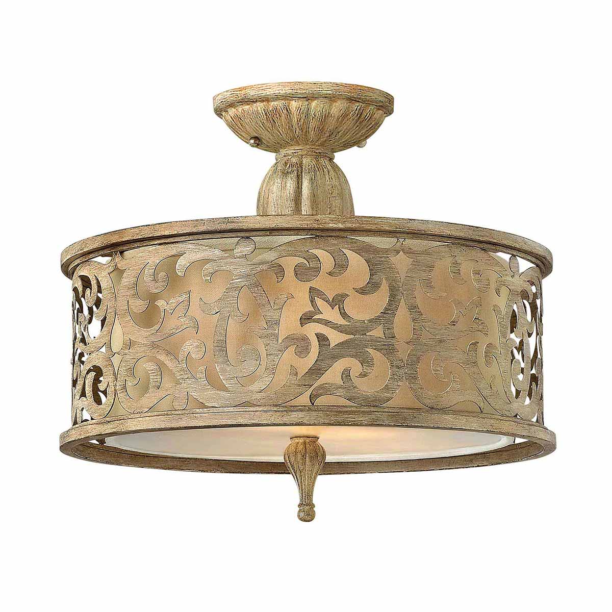Carabels flourishing pierced metalwork creates a stunning artistic design in a luxurious Brushed Champagne finish. The elegant scroll detail inset ivory linen shades and etched diffusers add to the beauty of this collection.
