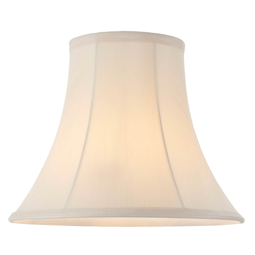 This 31cm handmade cream lamp shade is shaped in a round bell design and has a double folded trim on the top and bottom. For use with a variety of lamp bases and available in a choice of sizes