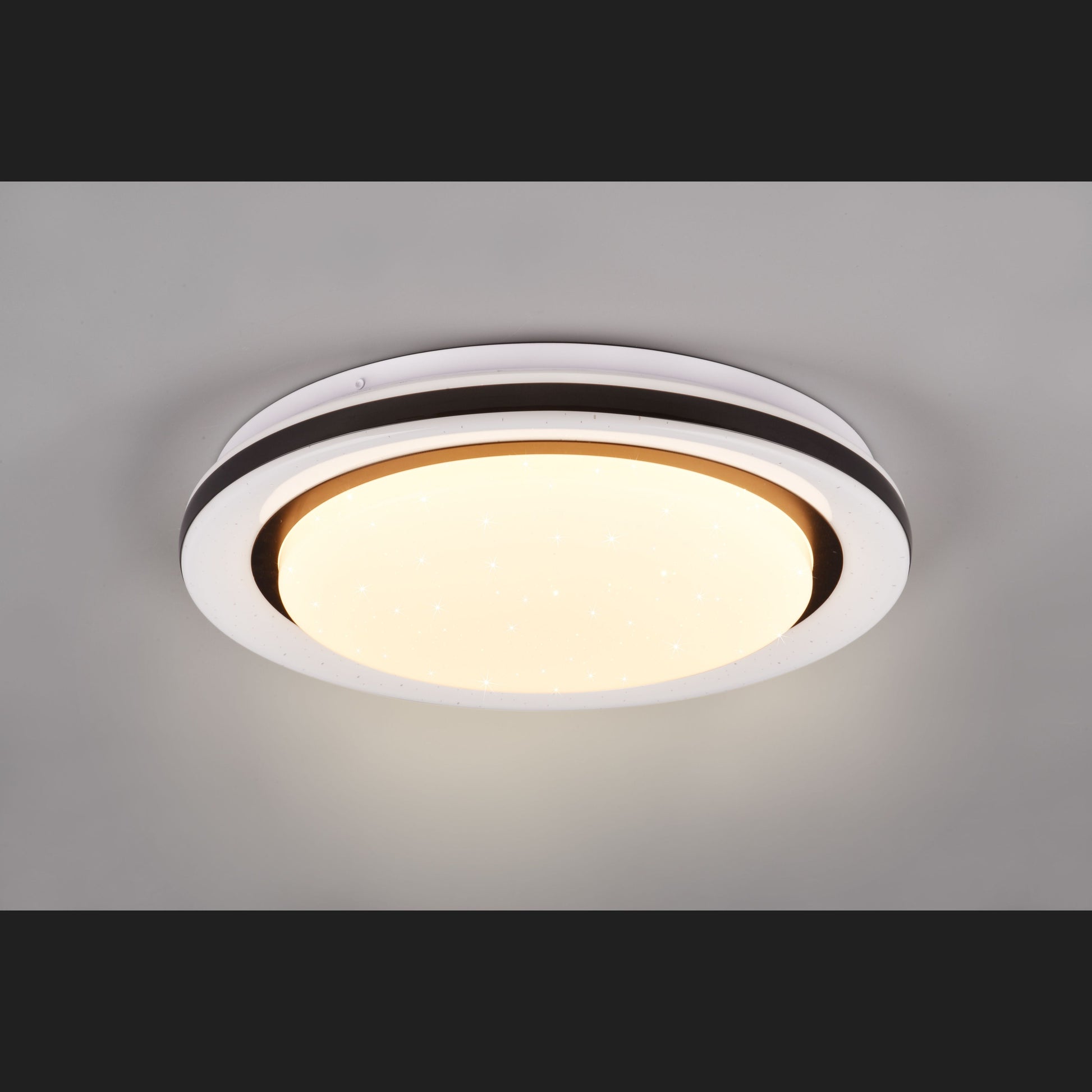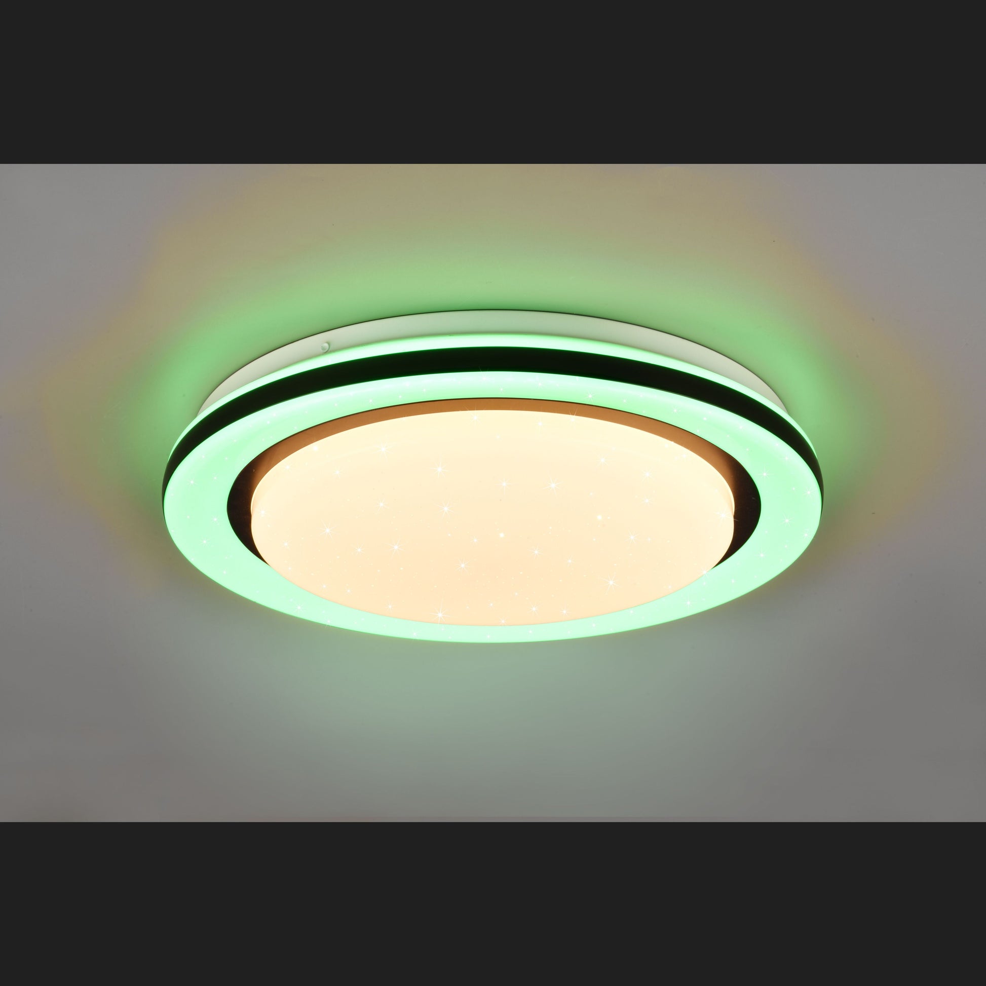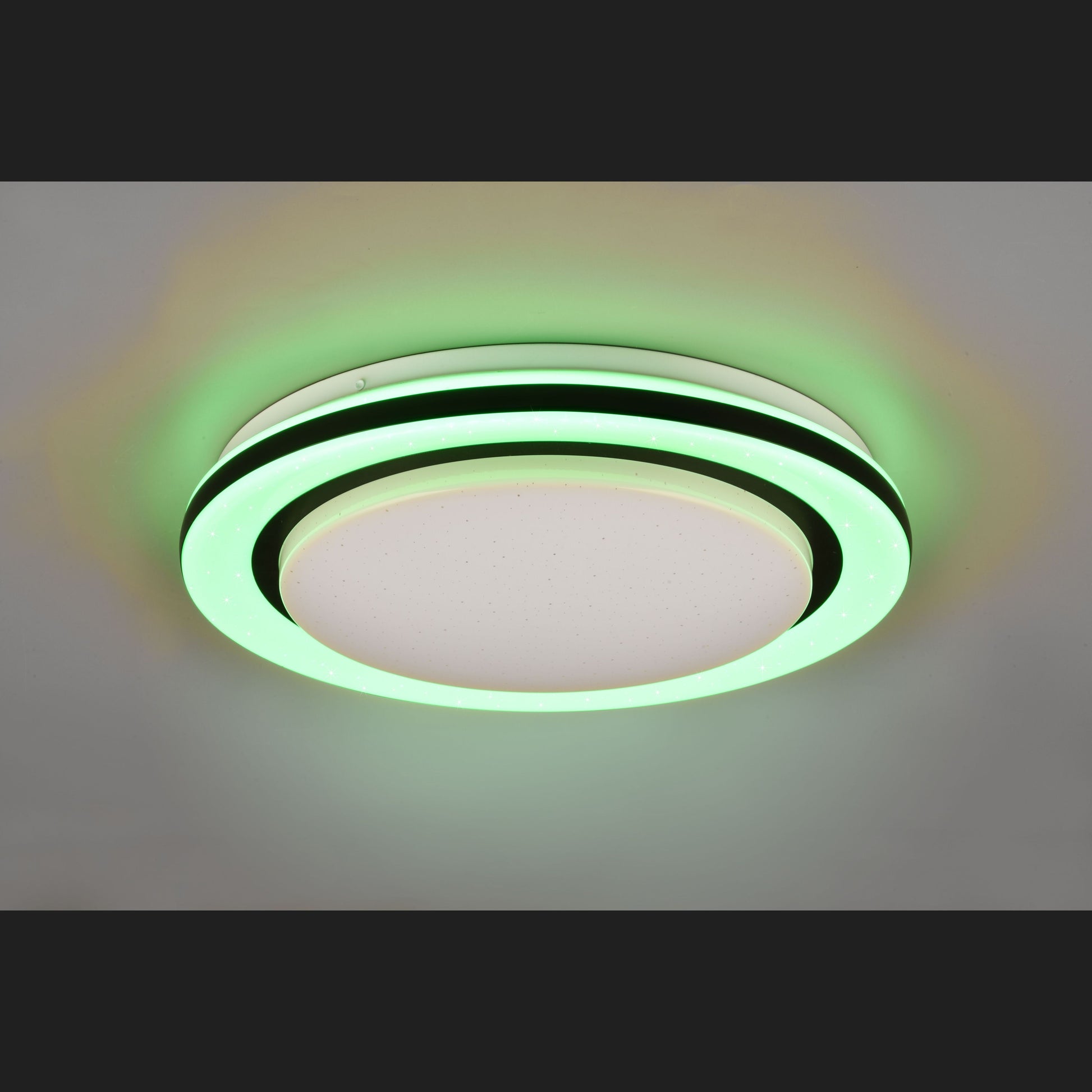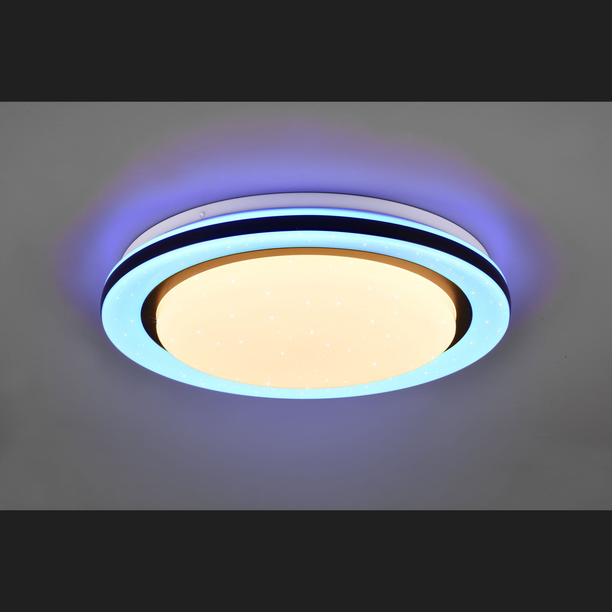 Interesting design and practical functions! The CARTIDA ceiling and wall light offers a wide range of possible applications and is visually appealing with a modern starlight cover, consisting of an inner illuminated surface and an outer illuminated ring. Both illuminated surfaces can be switched separately. Thanks to the integrated RGB colour changer, the outer illuminated ring can be individually adjusted in terms of colour, creating special lighting moments in your bedroom or living area. The remote control included in the scope of delivery can be used to conveniently adjust the light colour of the luminaire. The white plastic cover of the light easily blends in with existing interior fittings. The luminaire also features modern LED technology, which is characterised by high light quality and energy efficiency. Compared to conventional halogen light sources, up to 80% of energy costs can be saved. LED light sources also have a long service life, produce less heat and protect the environment.