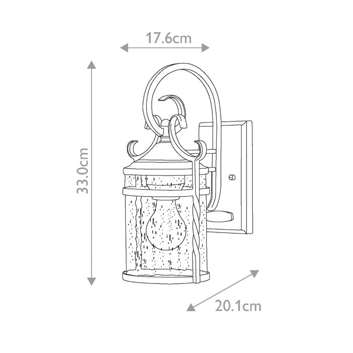 Casa makes the most of its fine details: clear seedy glass, twisted wrought iron and hand-forged scrollwork in an Olde Black finish complete its rustic-chic appeal with a Spanish flair. The 1lt wall lantern is IP44 rated for outdoor use too.