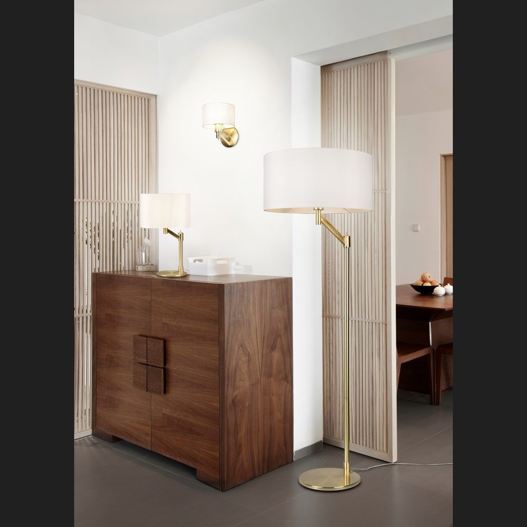 The luminaires of the CASSIO series with their textile shades create an atmospheric and cosy ambience. As the light of the wall lamp is gently emitted to the surroundings via the fabric shade, the lamp looks good next to the bed, where it comes into its own and creates a cosy ambience at the same time. For flexible use, the wall light is equipped with the FLEXconnect feature. This means that the luminaire is suitable for fixed connection both via the cord switch and directly without a cable feed. In this case, the luminaire is operated via a conventional wall switch. The simple and noble design in matt brass with white fabric shade sets decorative accents in your home. For energy-saving lighting, it is recommended to use an LED illuminant. These are an optimal alternative to conventional halogen lamps and stand for a high quality of light and energy savings of up to 80%. In addition, LED lamps help you benefit from a long service life, low heat generation and at the same time protect the environment.