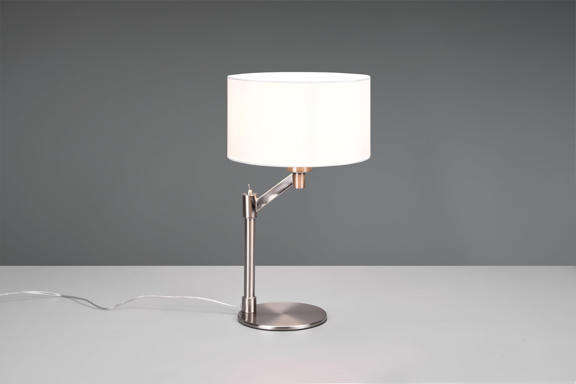 The luminaires of the CASSIO series with their textile shades create an atmospheric and cosy ambience. As the light of the table lamp is gently emitted to the surroundings via the fabric shade, the lamp looks good on a chest of drawers or the bedside table, where it comes into its own and creates a cosy atmosphere at the same time. The simple and noble design in nickel matt with white fabric shade sets decorative accents in your home. For energy-saving lighting, it is recommended to use an LED illuminant. These are an optimal alternative to conventional halogen lamps and stand for a high quality of light and energy savings of up to 80%. In addition, LED lamps help you benefit from a long service life, low heat generation and at the same time protect the environment.