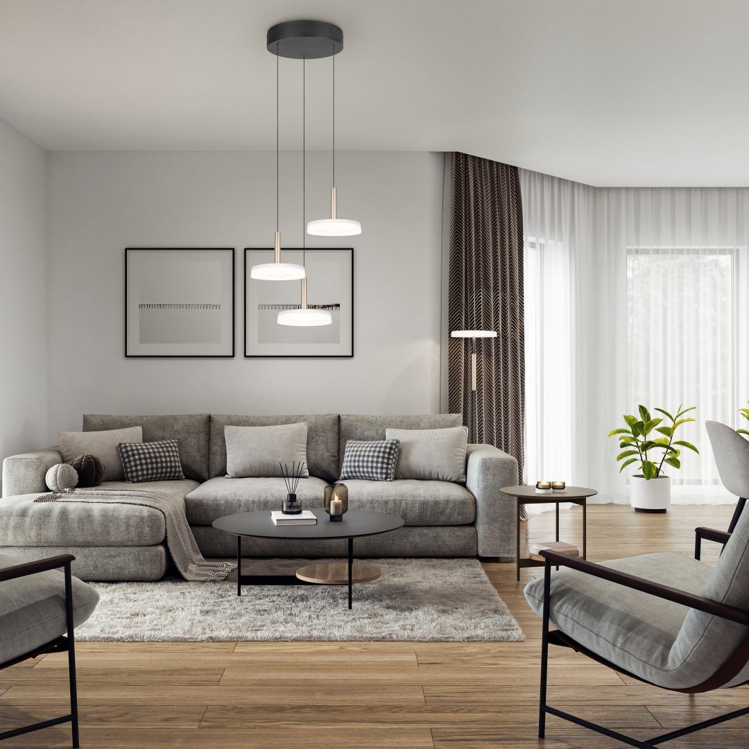The CELESTE floor lamp combines stylish elegance with high functionality. Its unique metal and glass design creates special accents in any room. The futuristically designed glass shade fascinates with its matt surface, which creates breathtaking plays of light and a warm, inviting atmosphere. Whether next to the sofa or in the hallway - CELESTE always provides the perfect lighting. Thanks to the integrated sensor dimmer, you can continuously adjust the brightness to suit your needs. The stylish combination of metal in coffee and matt black and white glass blends seamlessly into both modern and classic furnishing styles and allows the light to shine in any setting. The luminaire also features modern LED technology, which is characterised by high light quality and energy efficiency. Compared to conventional halogen light sources, up to 80% of energy costs can be saved. LED light sources also have a long service life, produce less heat and protect the environment.