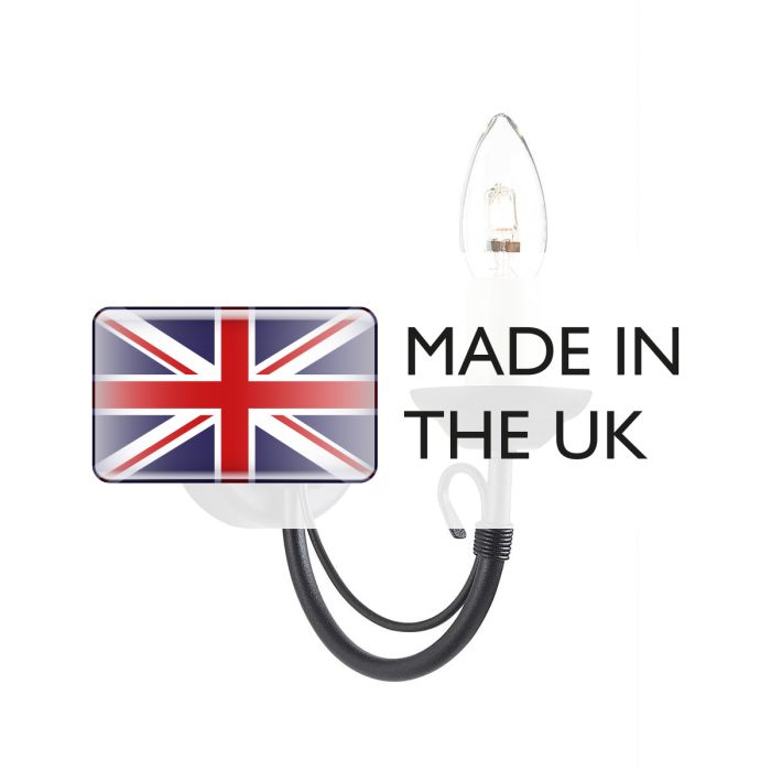 The delicacy of the scrolls matched to the hand-worked wire bound arms and Ivory candle tubes give this range a timeless appeal. Made in England.
