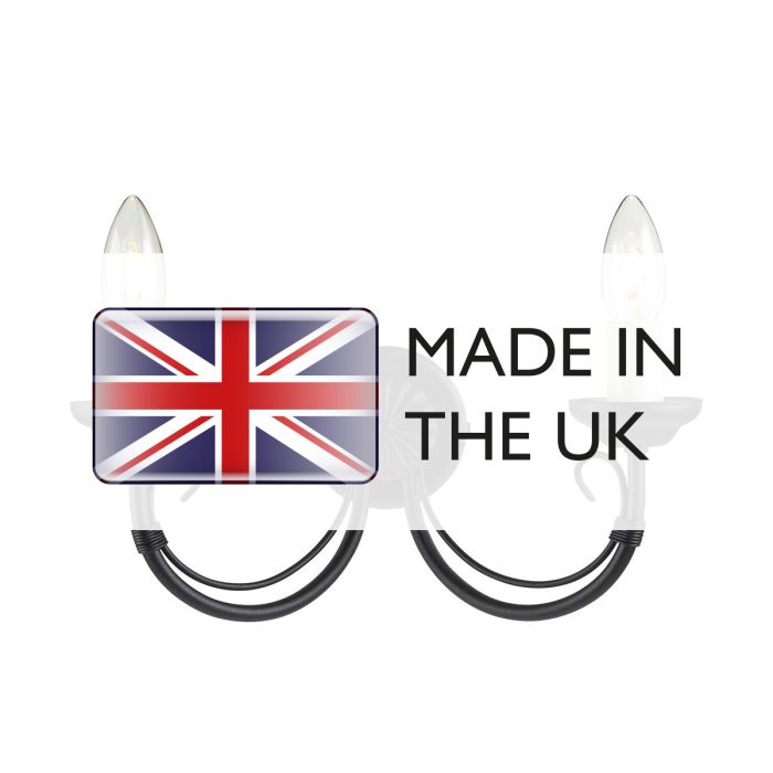 The delicacy of the scrolls matched to the hand-worked wire bound arms and Ivory candle tubes give this range a timeless appeal. Made in England.