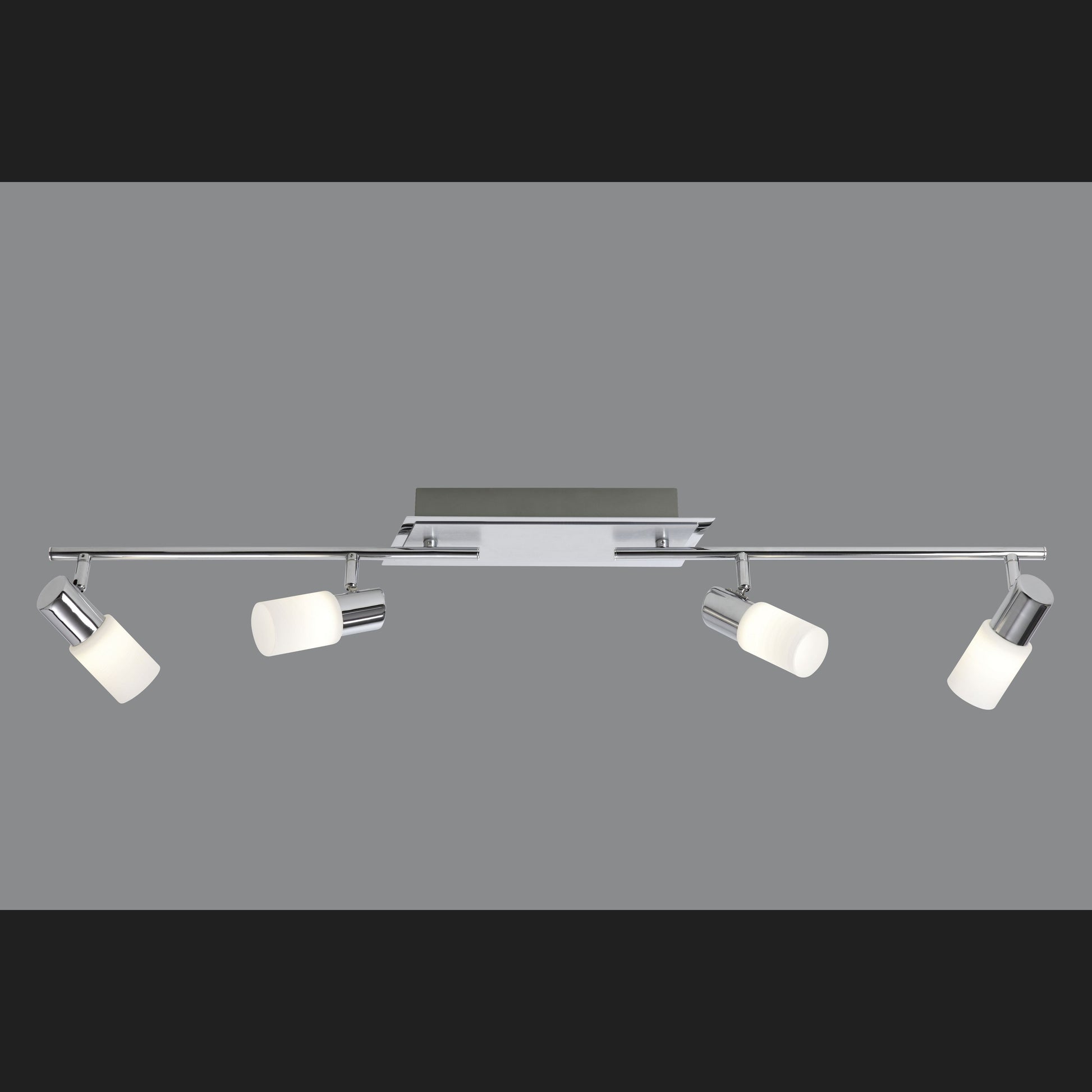 The CLAPTON LED bar impresses with its adjustable spot heads and the additionally attached joints. Depending on the number of spotlights, they can be used as decorative and orientation lighting or to illuminate the entire living space. You can direct the movable spotlights as you wish. The light has a length of 94 cm. Thanks to the chrome metal colour scheme and the matt white wiped glass, the bar can be seamlessly integrated into numerous furnishing styles. In addition, the luminaire features modern LED technology, which is characterised by high light quality and energy efficiency. Compared to conventional halogen lamps, up to 80% of energy costs can be saved. In addition, LED light sources have a long service life, produce less heat and protect the environment.