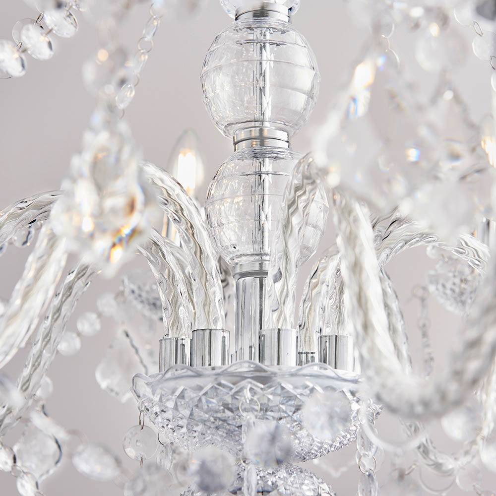 An impressive 8 light chandelier with clear acrylic beading, facets and droplets. Comes with a fully adjustable chain to extend the drop of the light up to a maximum 1.8m.