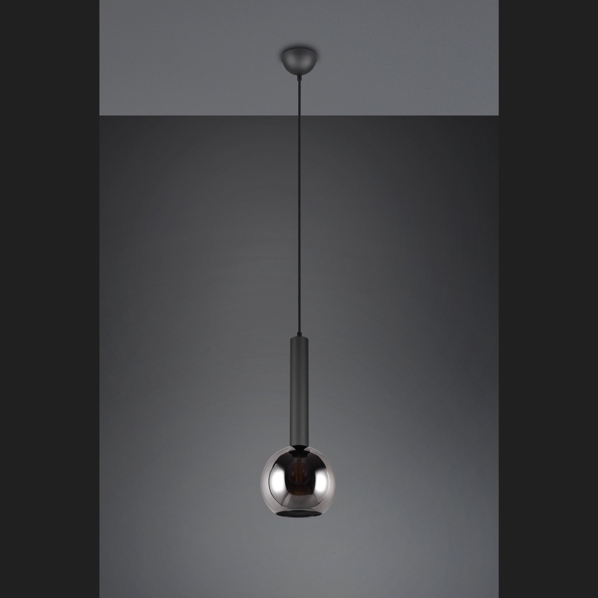 Timeless, simple and yet characteristic. The modern CLAYTON pendant lamp attracts all eyes with its combination of a noble glass shade and dark metal. The round shape of the glass shade emits the light in a special way to its surroundings, creating a cosy atmosphere. Placed above the living room table or centrally above the dining table, the luminaire comes into its own and creates new favourite places in your home. The glass in chrome vapourised in combination with black matt metal fits effortlessly into every living style and colour concept and can be combined well. For energy-saving lighting, it is recommended to use an LED illuminant. These are an optimal alternative to conventional halogen lamps and stand for a high quality of light and energy savings of up to 80%. In addition, LED lamps help you benefit from a long service life, low heat generation and at the same time protect the environment.