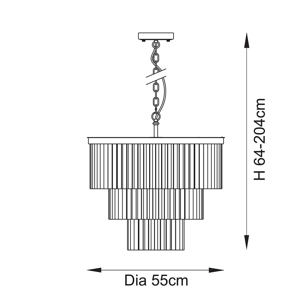 Opulent and eye-catching, this seven-light pendant is a true statement piece featuring cascading tiers of angled glass droppers that shimmer with elegance. The sculptural design is crowned by a shaped metal band in a lustrous brushed brass finish, bringing structure and contrast to the fluid glass arrangement. Suspended from a height-adjustable chain, it offers a luxurious focal point ideal for grand entryways, lounge, bedrooms, dining rooms, or stairwells.