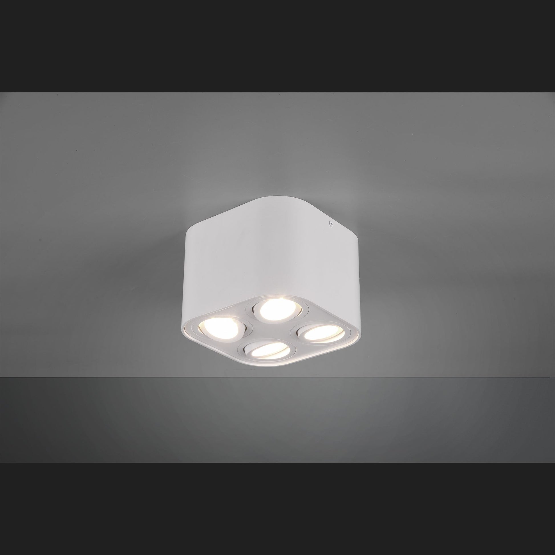 The COOKIE ceiling light impresses with its simple design and attractive appearance, and the modern, upright construction of the 4-light luminaire is particularly suitable if you want a visual highlight in the room. The swivelling lampholders in the luminaire allow the light beam to be optimally adjusted. The metal item is matt white. The use of LED light sources is recommended for energy-saving lighting. These are an ideal alternative to conventional halogen light sources and offer high light quality and energy savings of up to 80%. With LED light sources, you also benefit from a long service life and low heat generation while protecting the environment.