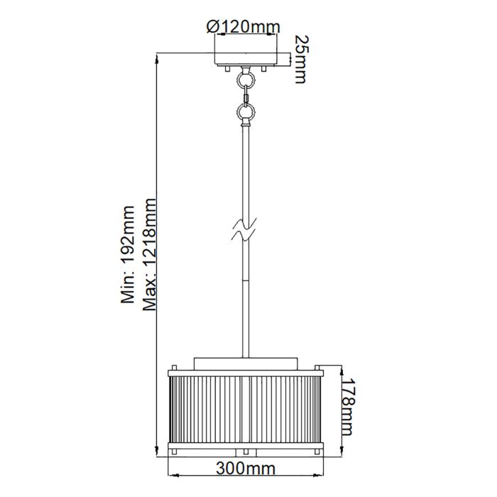 - Product Dimensions: H: 178mm D: 300mm Min/Max Drop: 192mm - 1218mm
